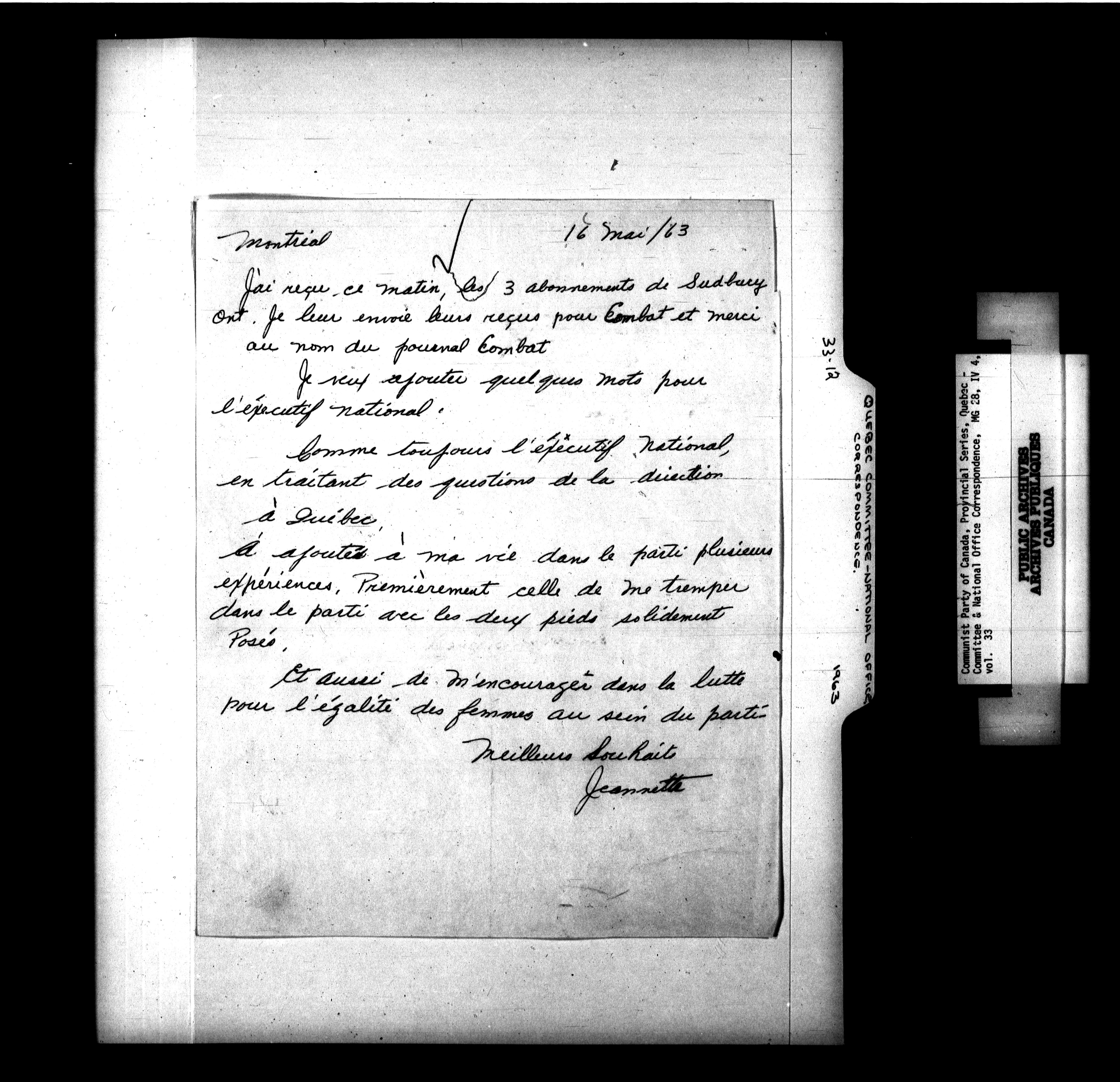 Communist Party of Canada : Provincial series, Ontario, Subject files A-L - 1599