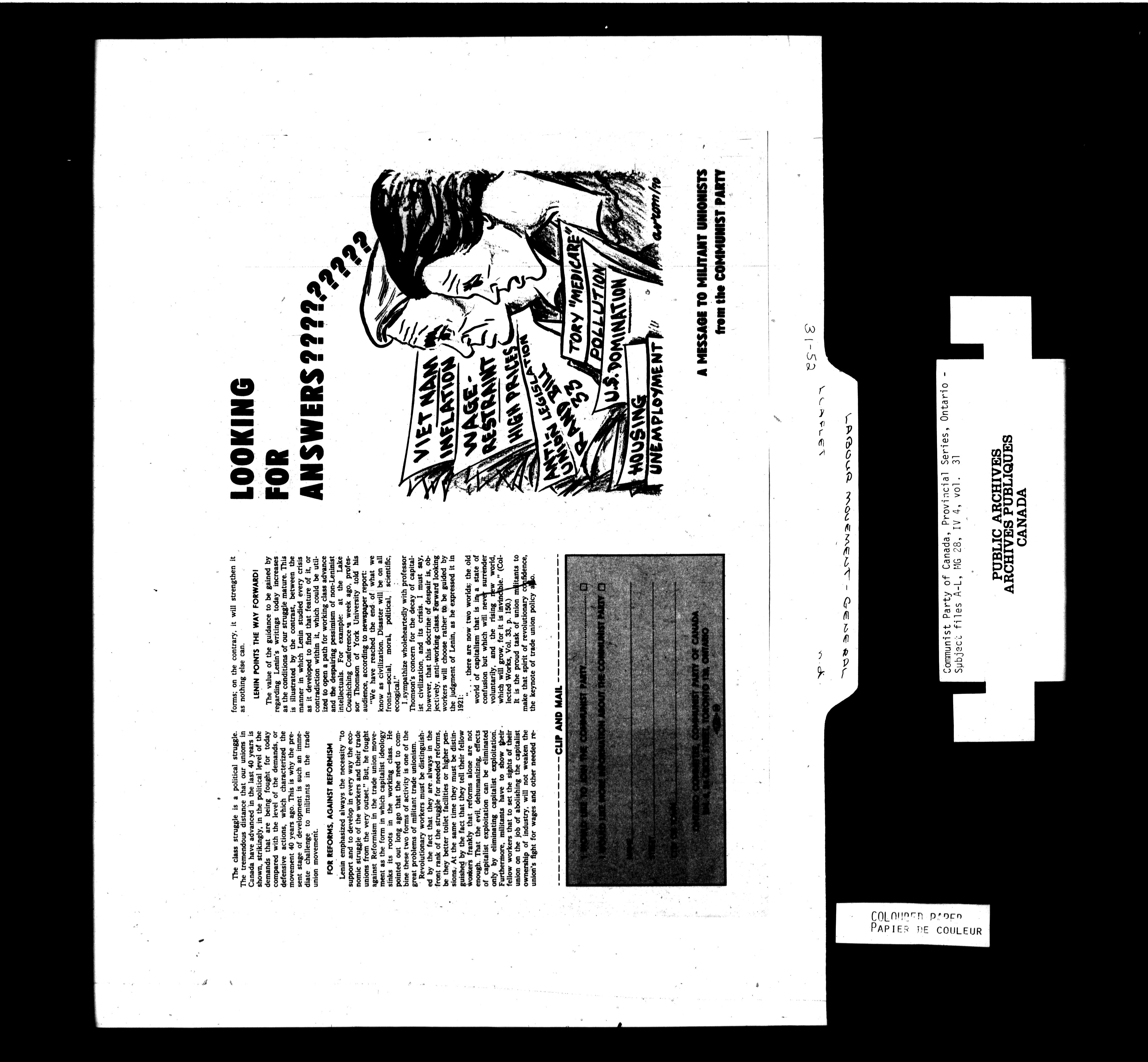 Communist Party of Canada : Provincial series, Ontario, Subject files A-L - 1599
