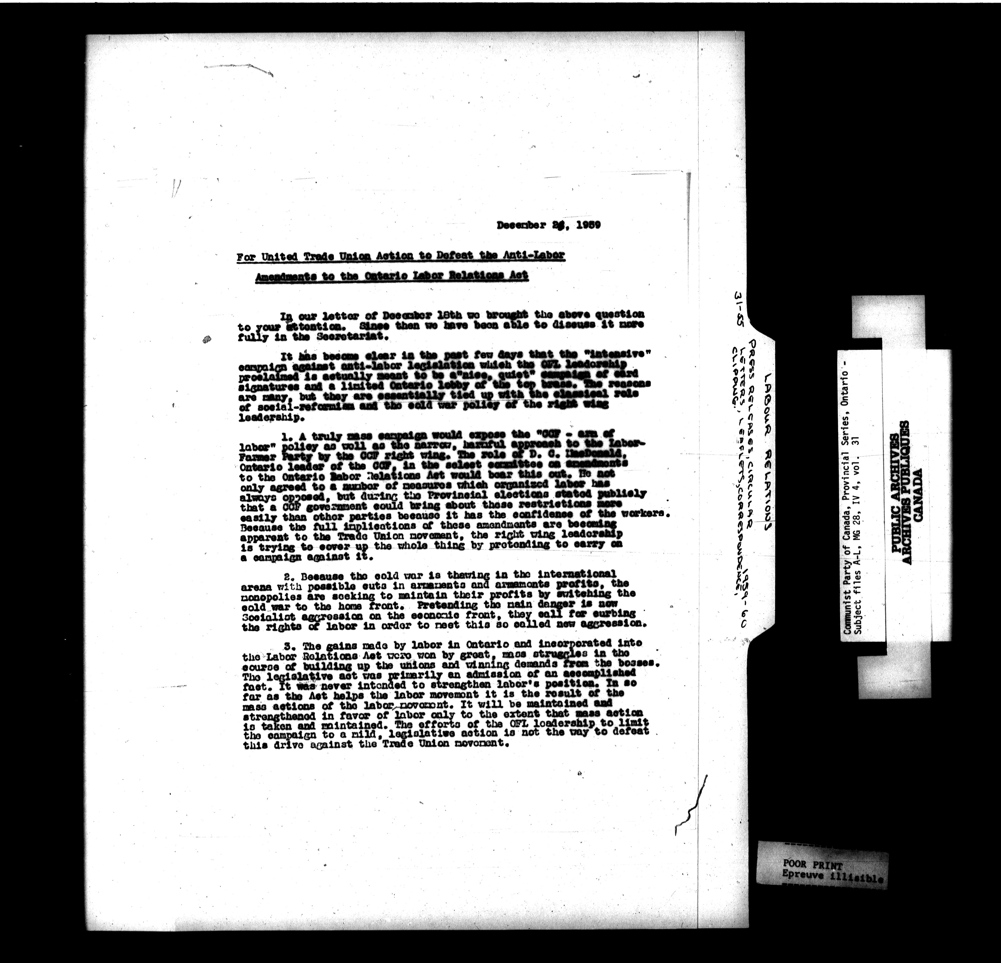 Communist Party of Canada : Provincial series, Ontario, Subject files A-L - 1599