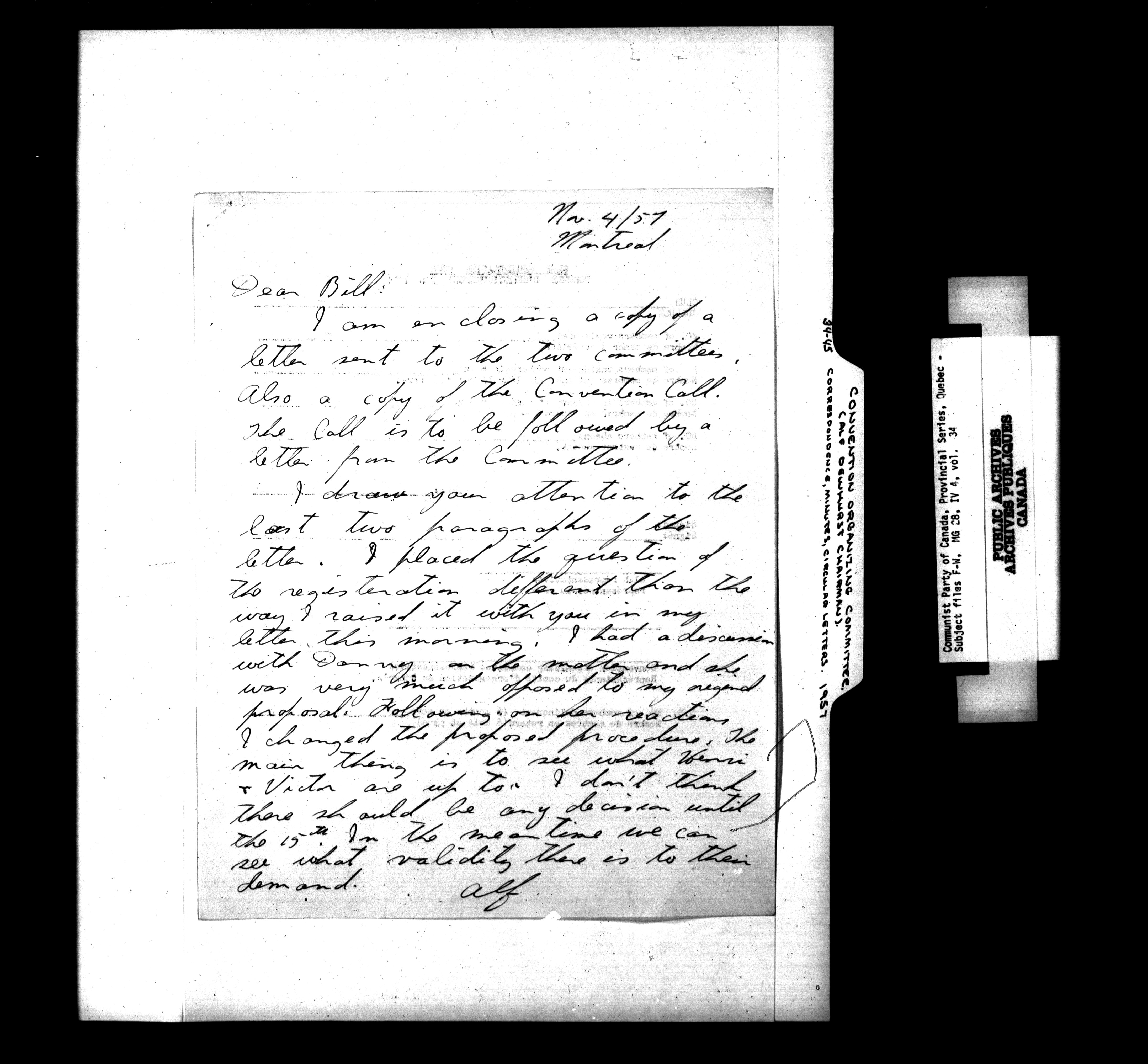 Communist Party of Canada : Provincial series, Quebec, Committee and National Office Correspondence - 1600