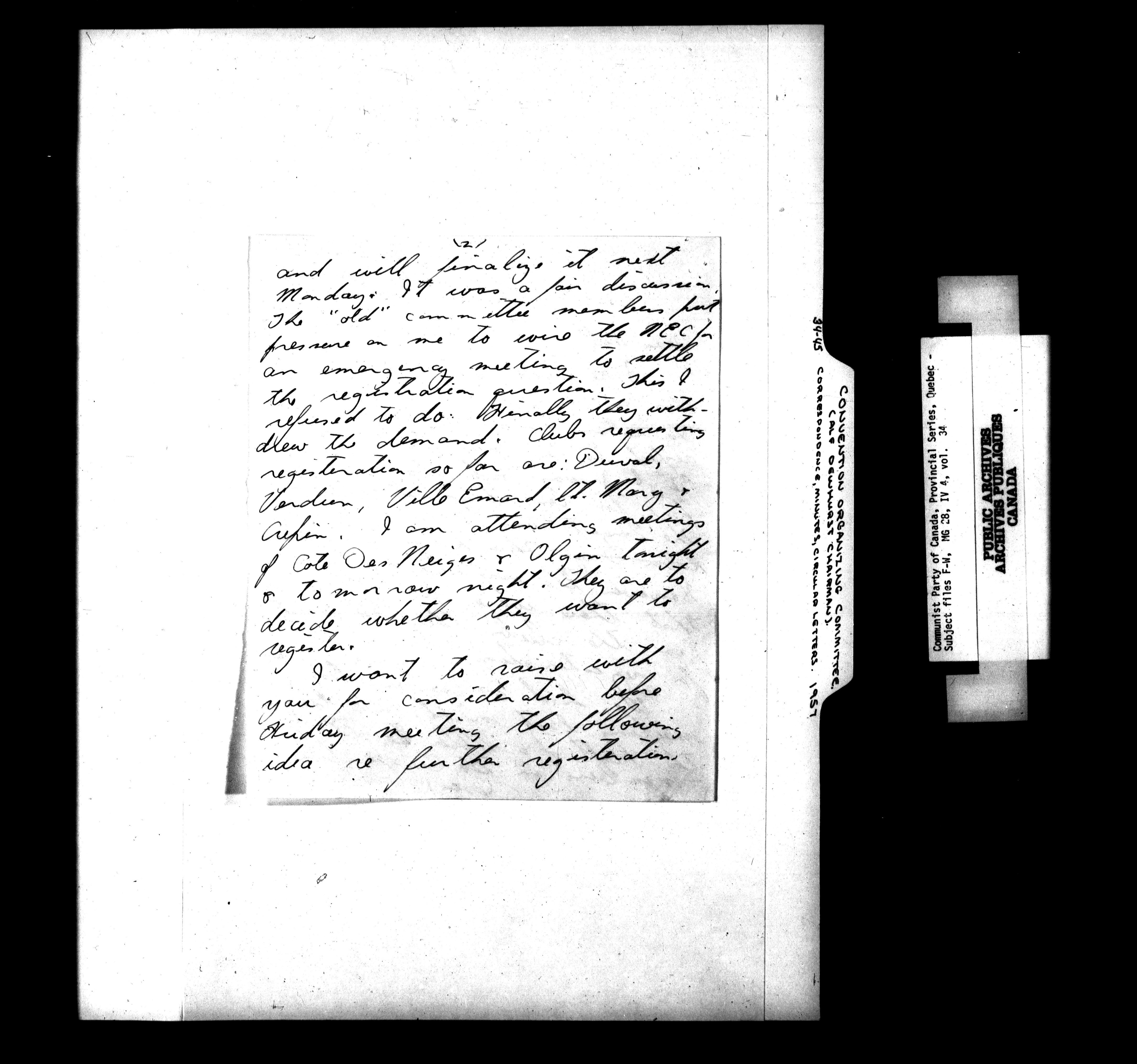 Communist Party of Canada : Provincial series, Quebec, Committee and National Office Correspondence - 1600