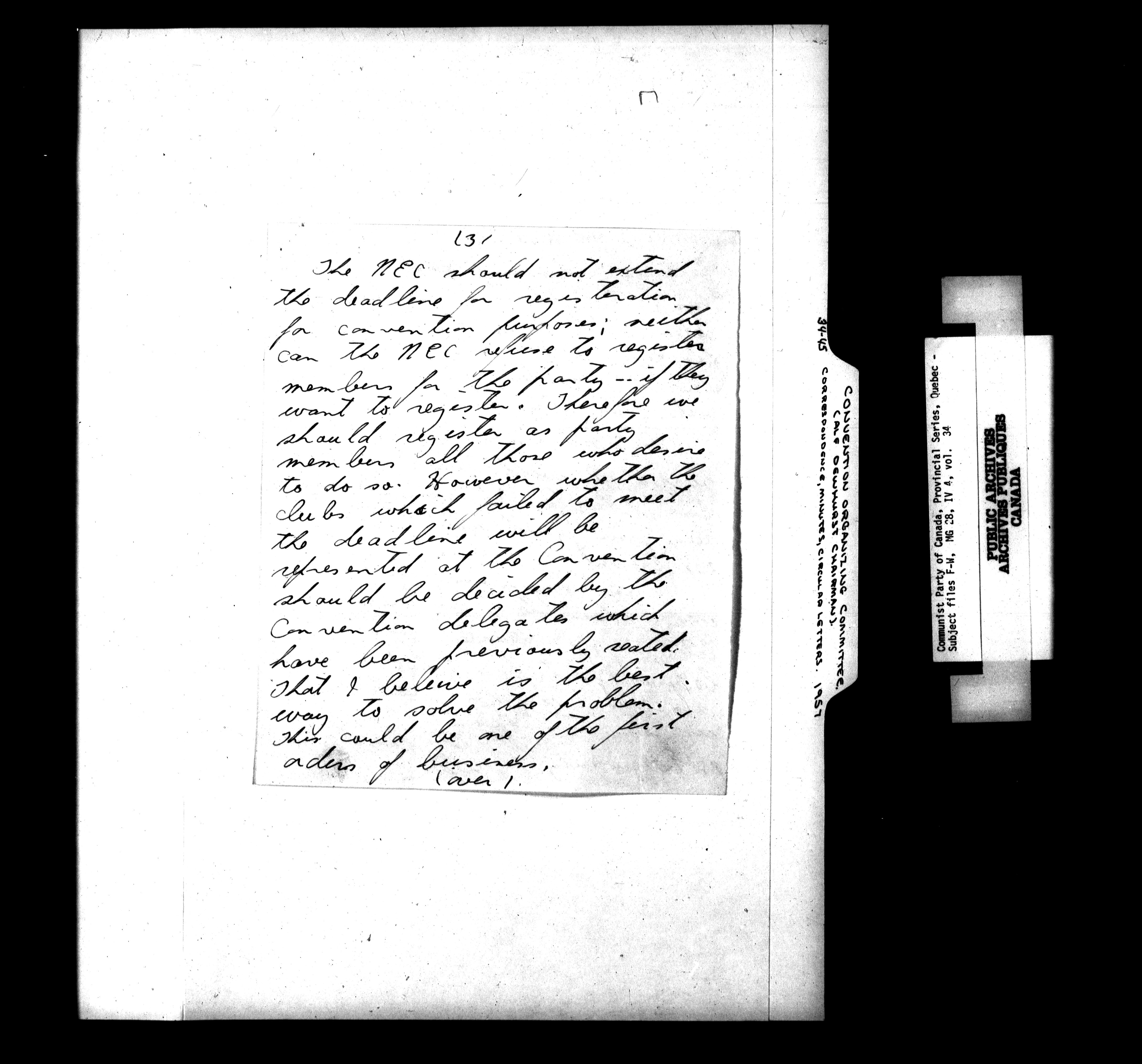 Communist Party of Canada : Provincial series, Quebec, Committee and National Office Correspondence - 1600