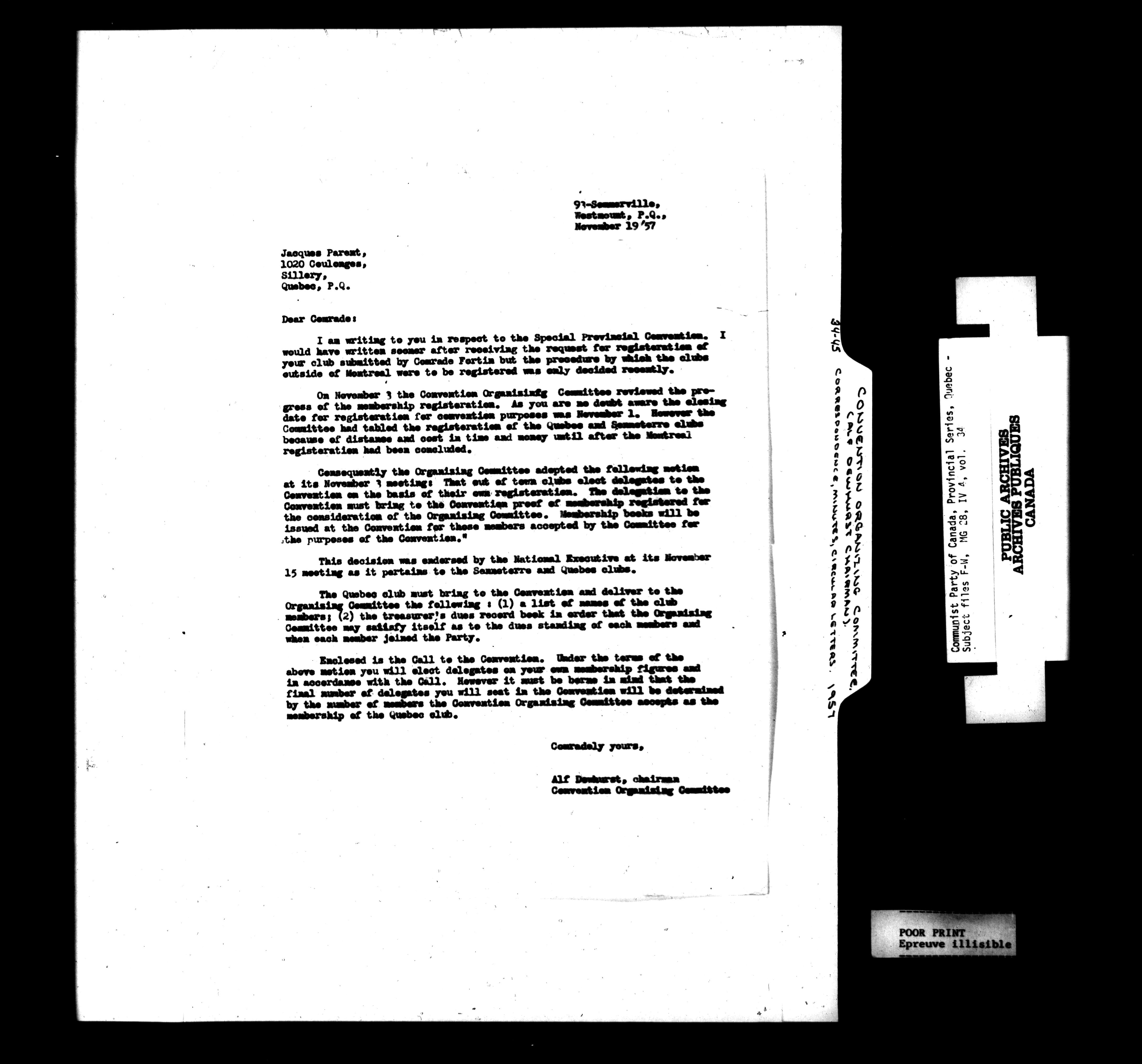 Communist Party of Canada : Provincial series, Quebec, Committee and National Office Correspondence - 1600
