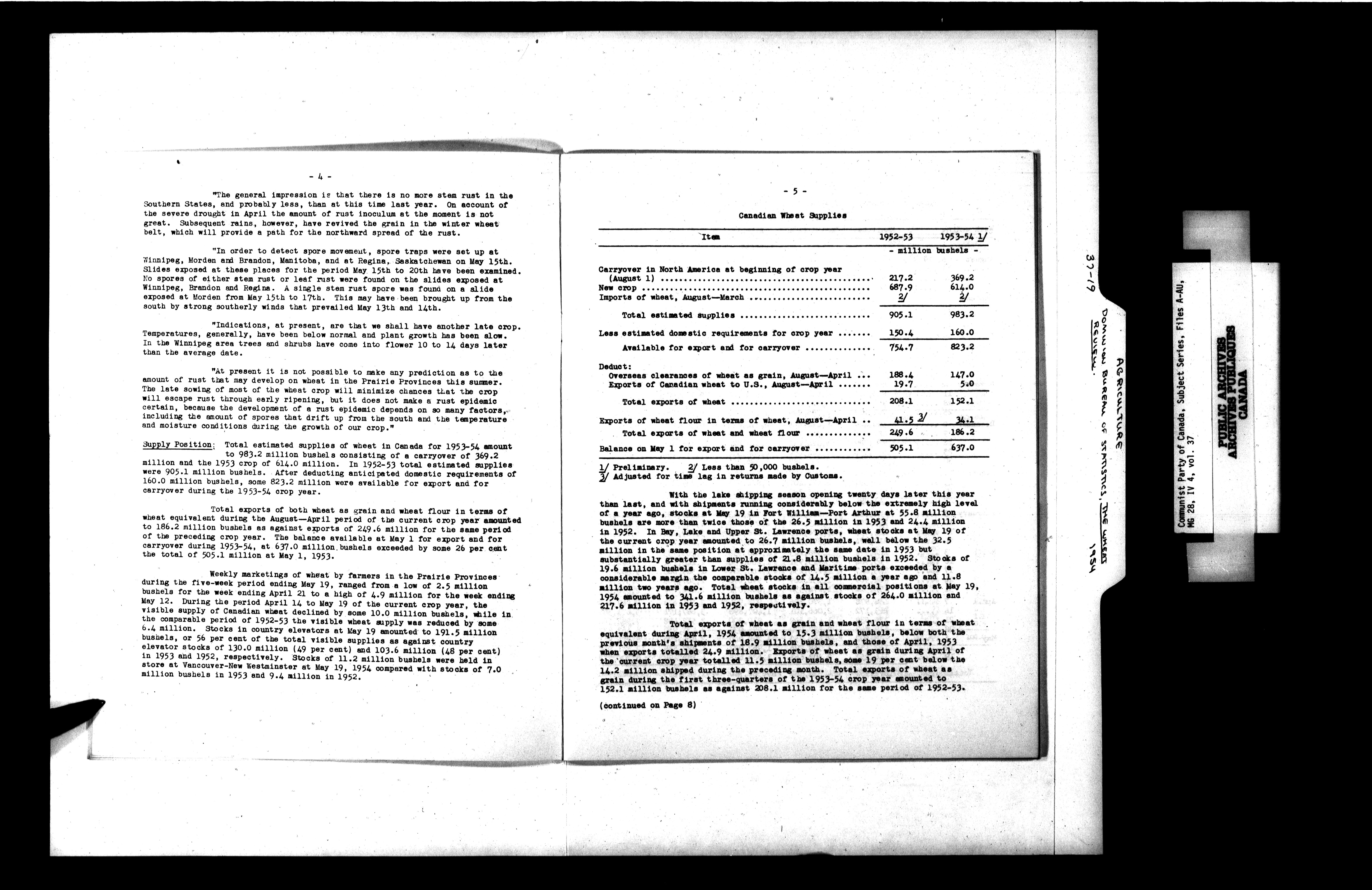 Communist Party of Canada : National Executive Committee - circular letters and other material sent to provinces, 1949-1971 - 1602