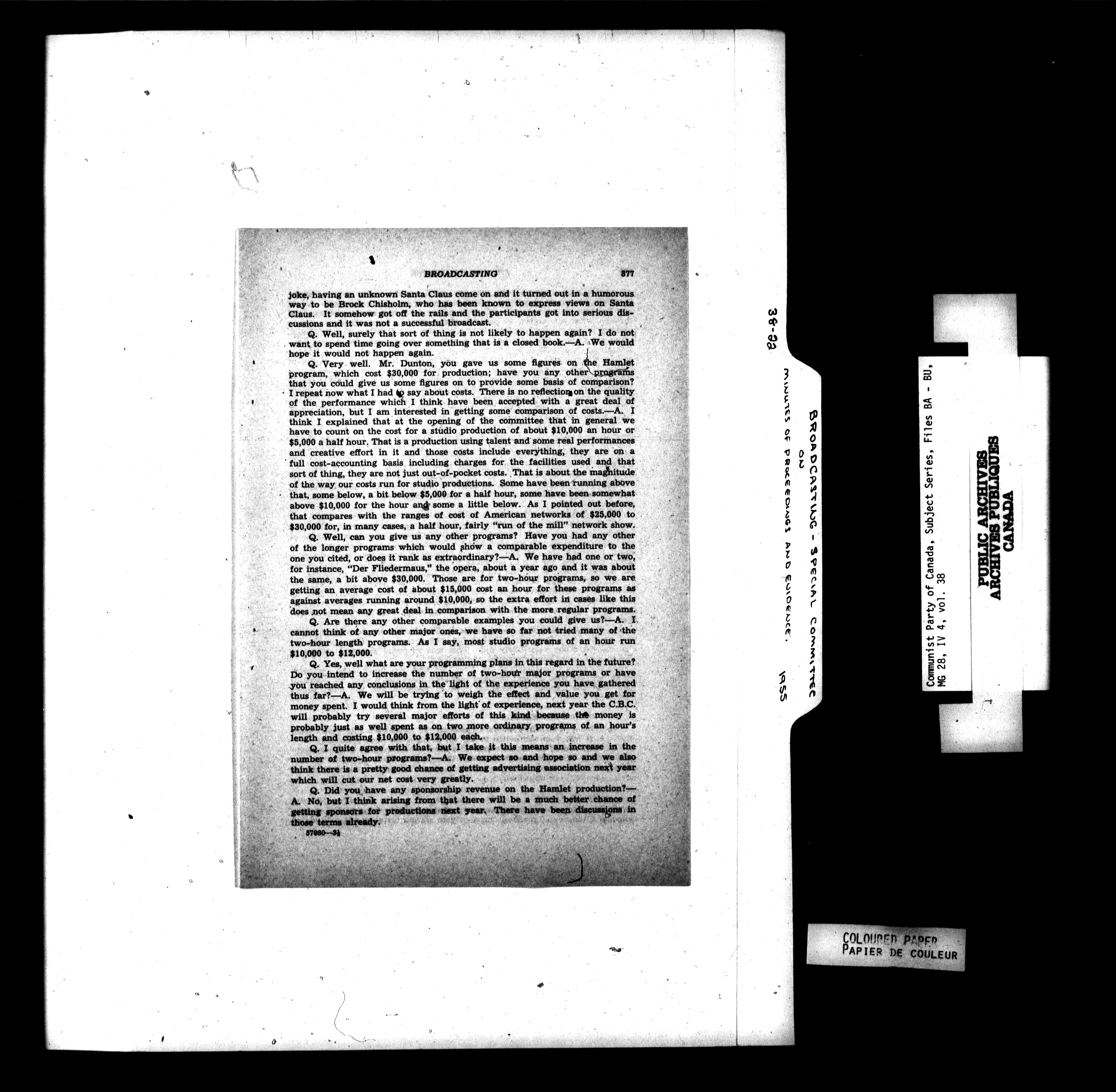 Communist Party of Canada : Subject series, Files A-Au - 1603