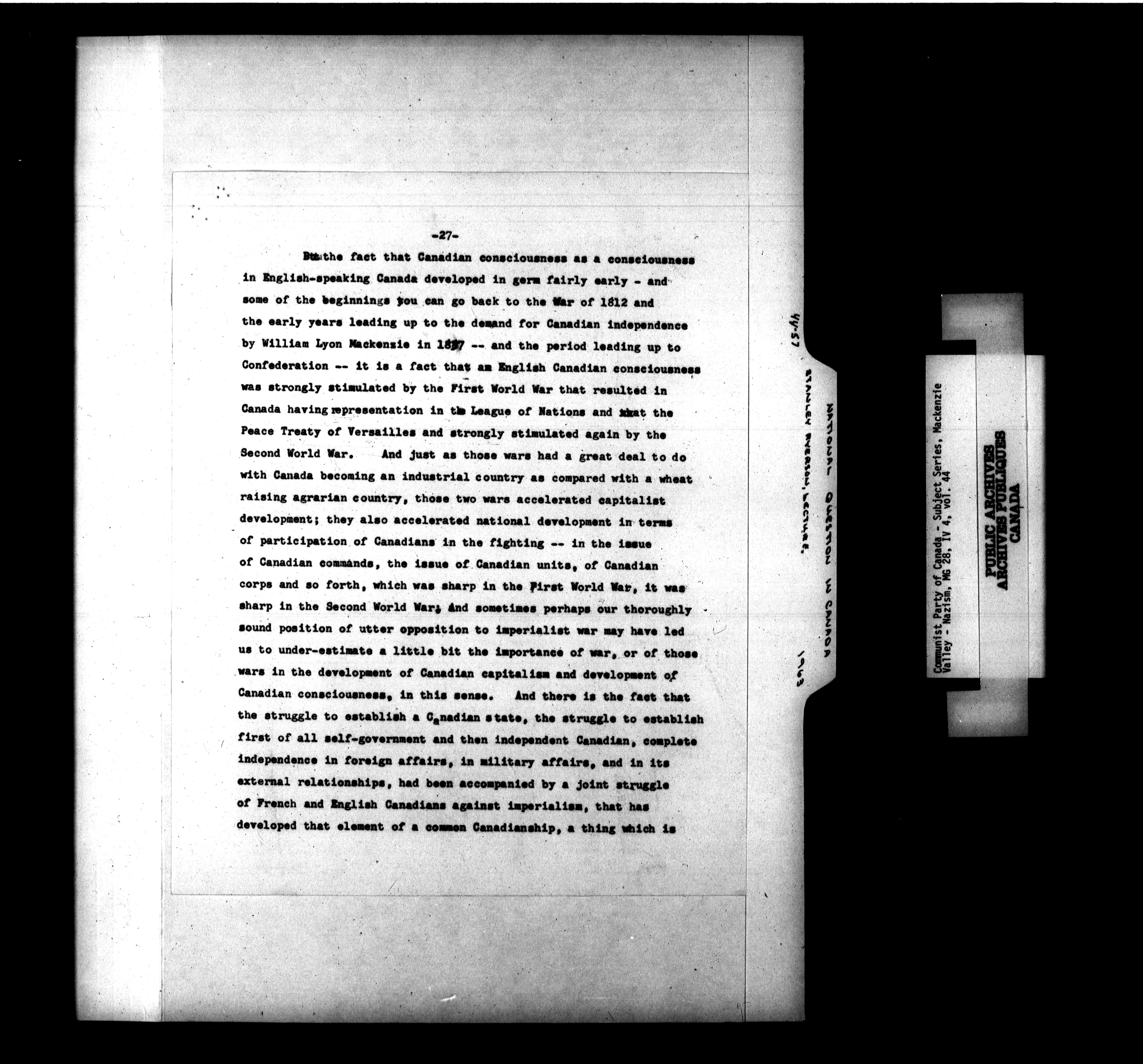 Communist Party of Canada : Subject series, Files Mackenzie Valley - Nazism - 1610