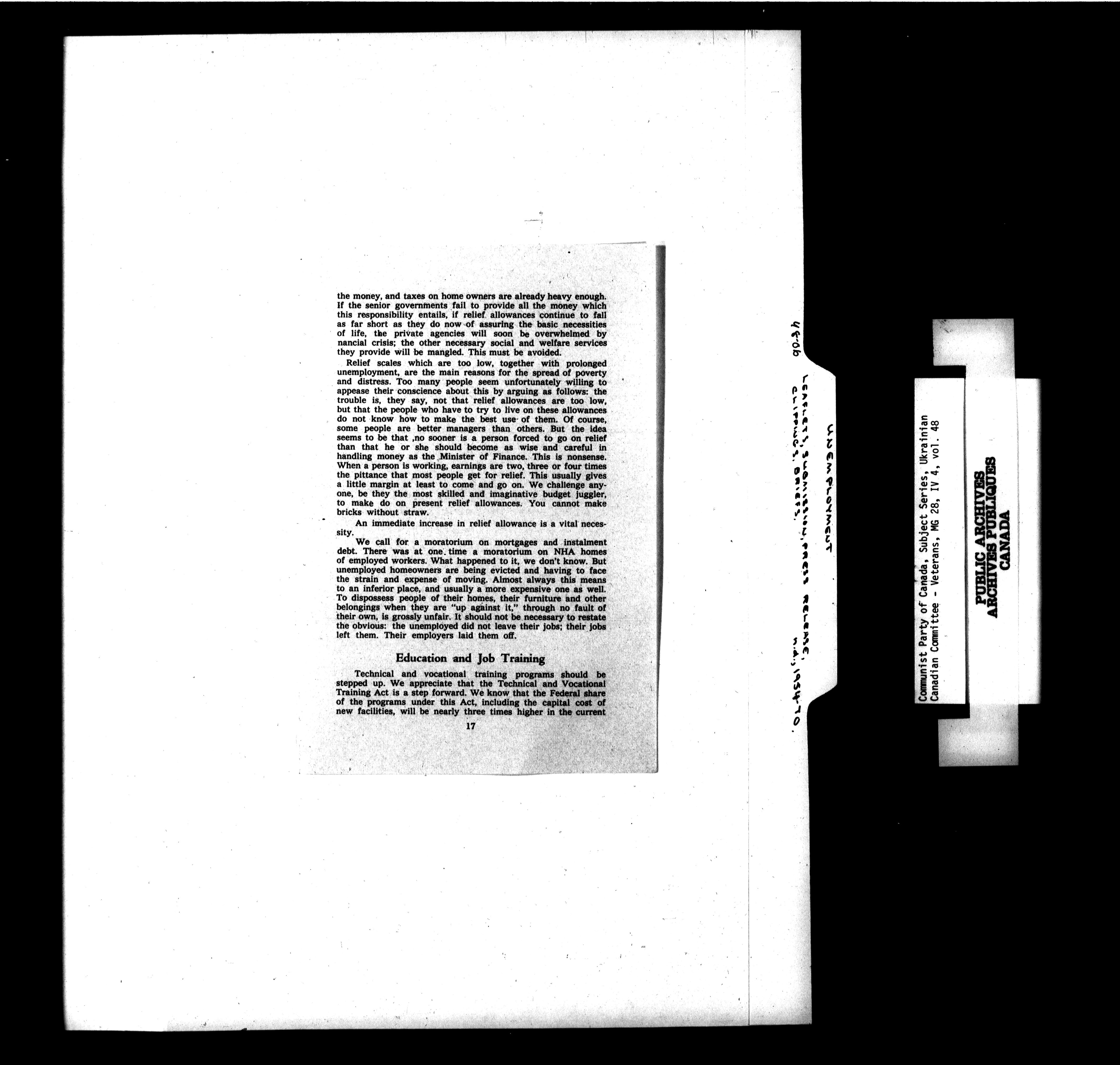 Communist Party of Canada : Subject series, Files Ukrainian Committee - Vetrans - 1613
