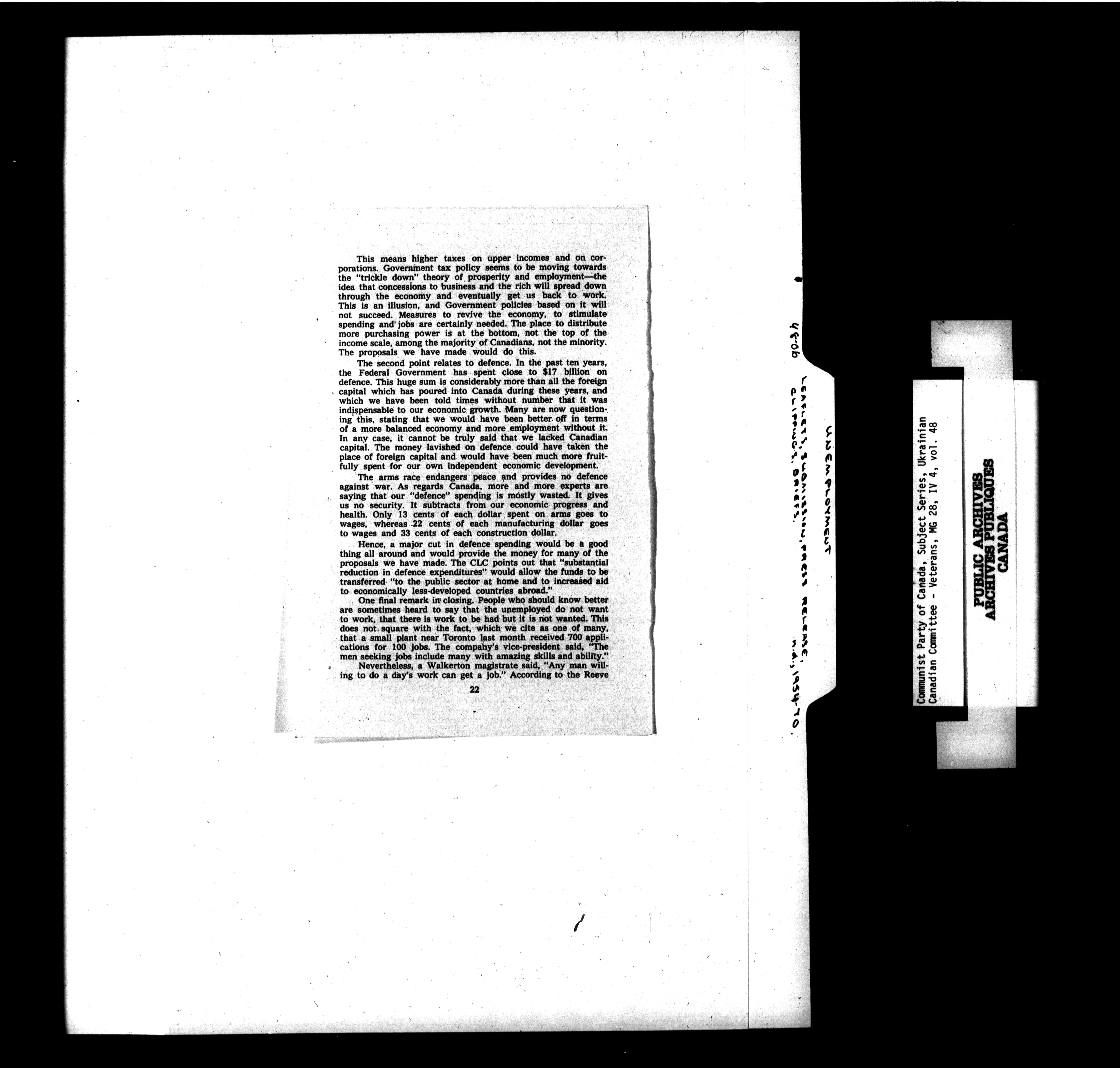 Communist Party of Canada : Subject series, Files Ukrainian Committee - Vetrans - 1613