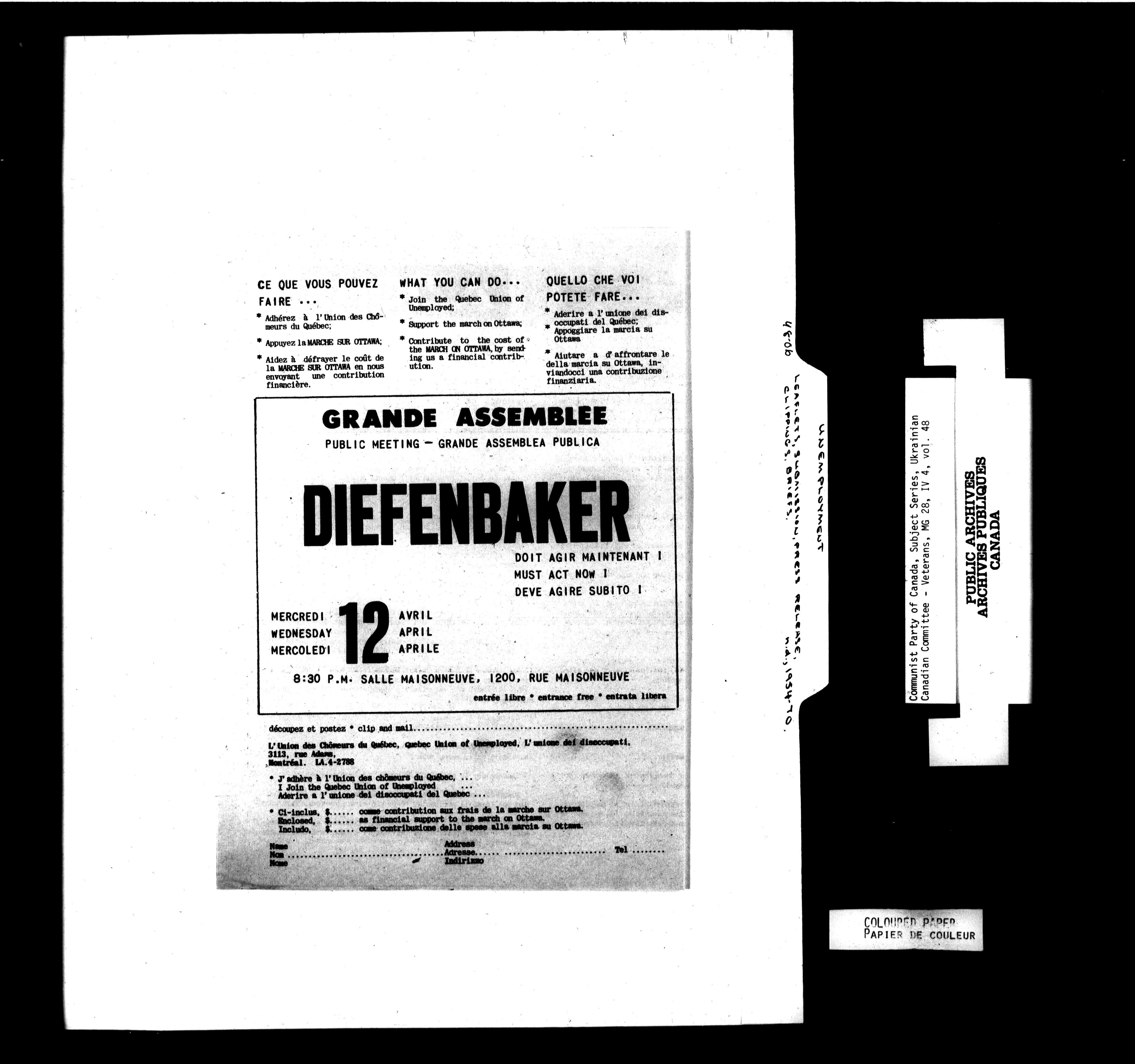 Communist Party of Canada : Subject series, Files Ukrainian Committee - Vetrans - 1613