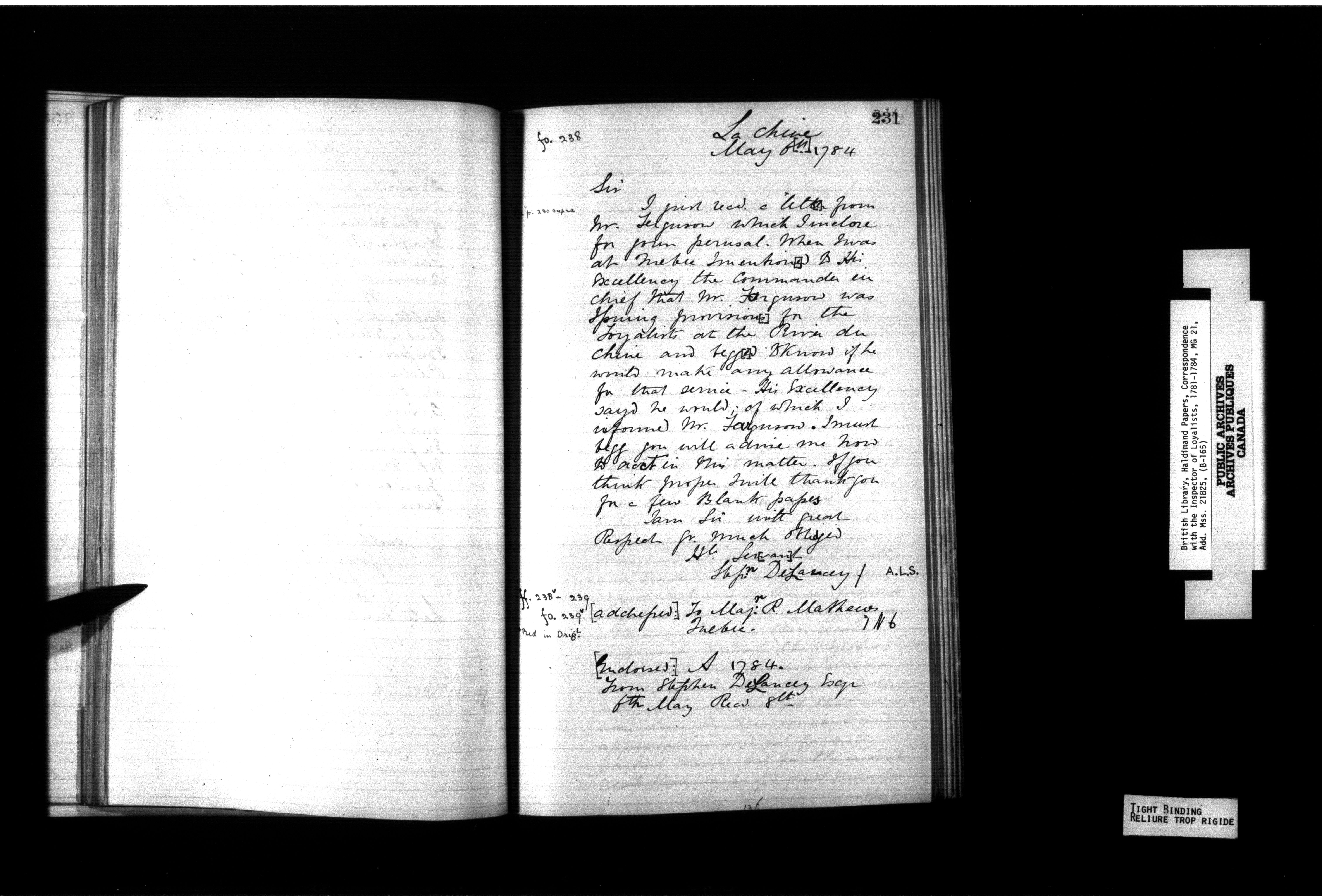 British Library, formerly British Museum, Additional Manuscripts 21804-21834, Haldimand Papers - 1654