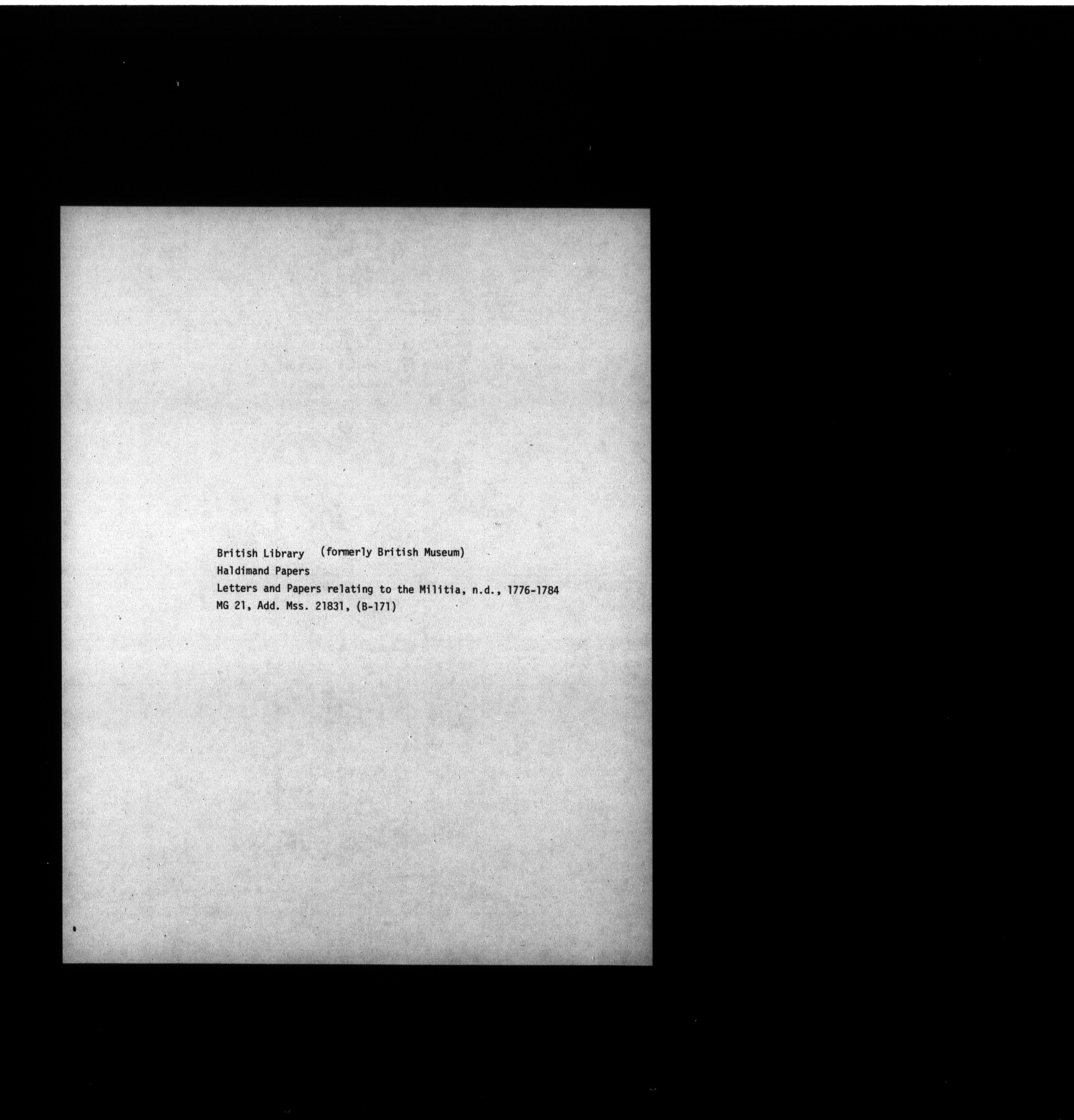 British Library, formerly British Museum, Additional Manuscripts 21804-21834, Haldimand Papers - 1655