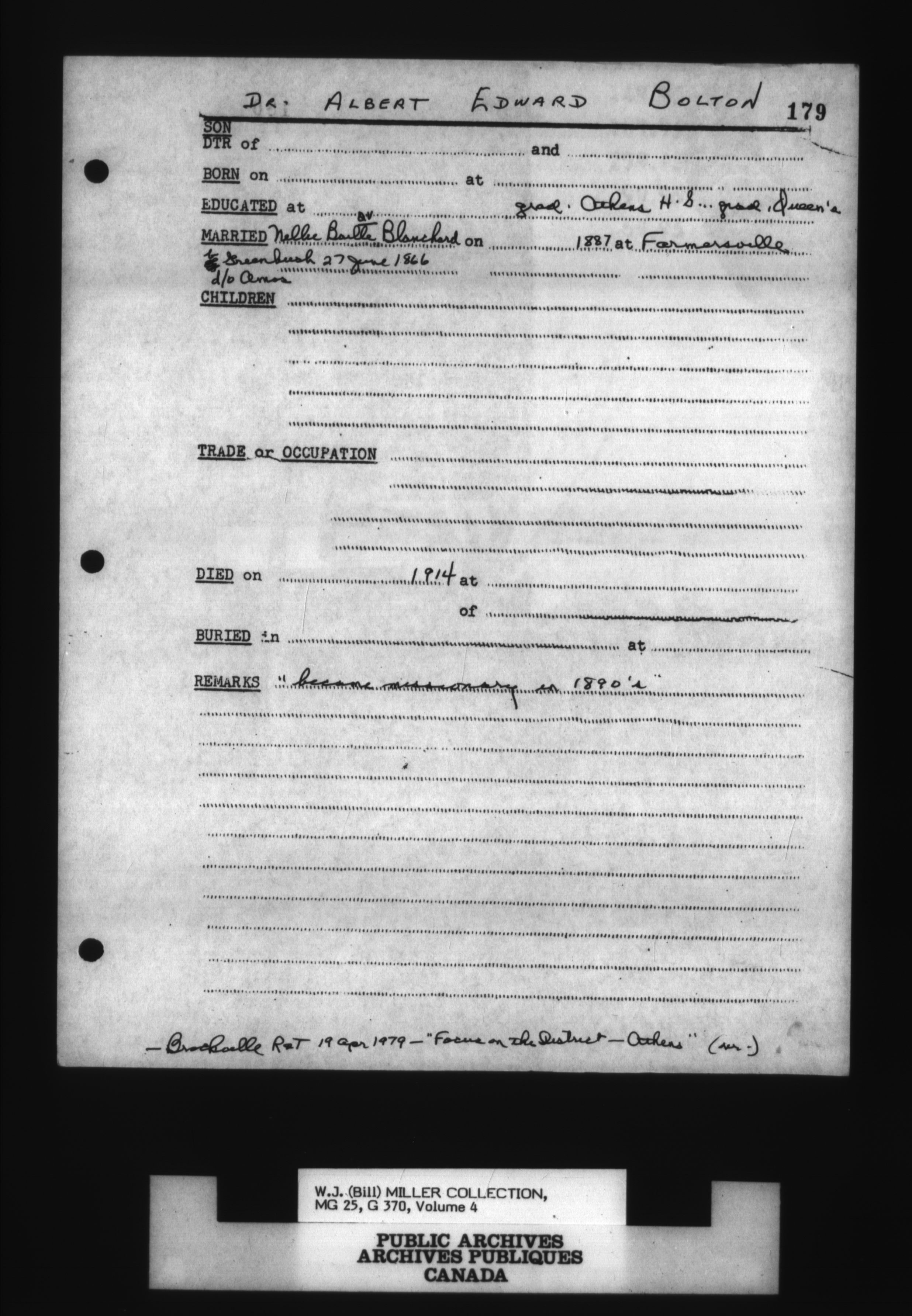 Miller, W. J. (Bill) Collection - 1668