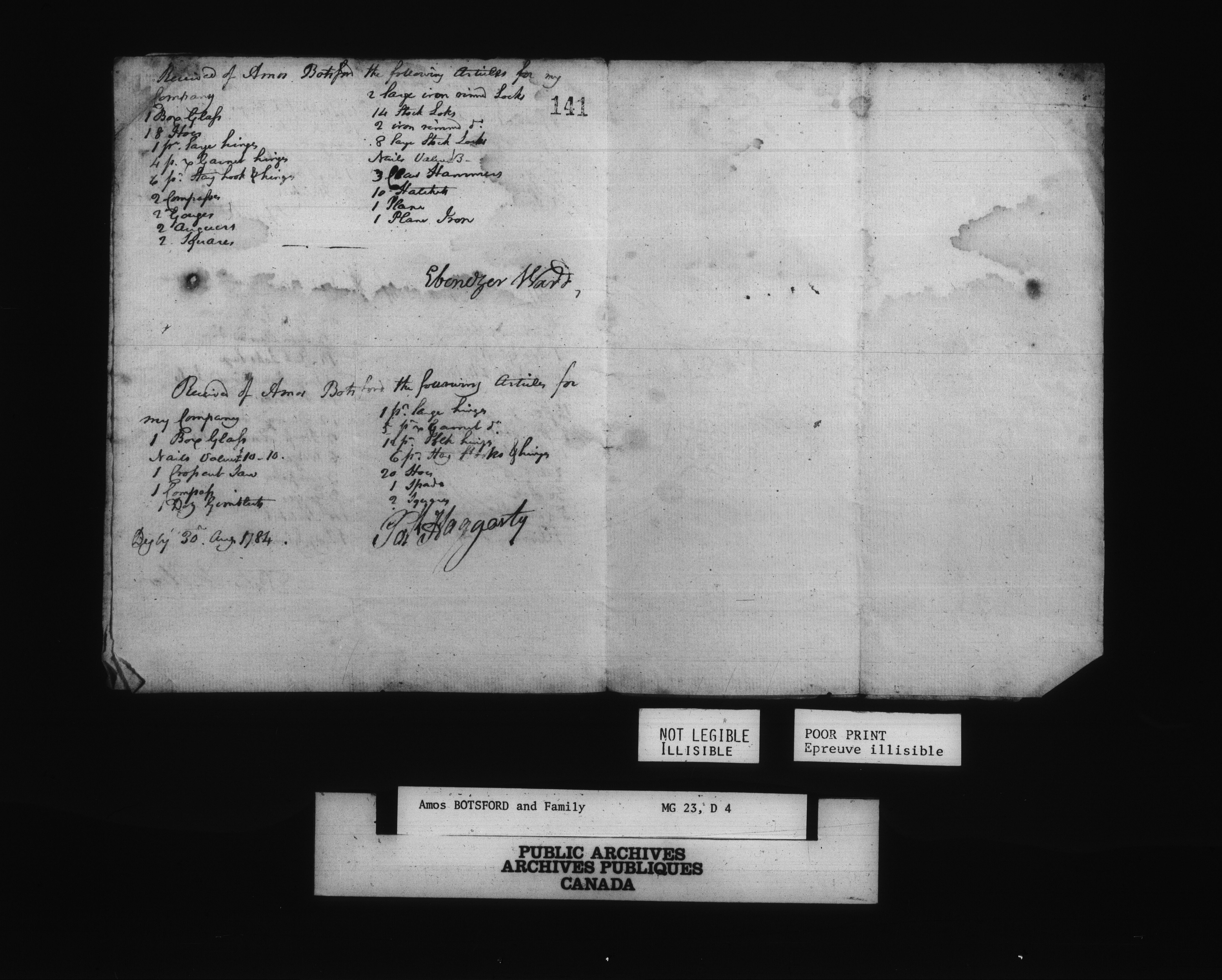 Finding aid no. 525 to the Amos Botsford and family fonds - 1687