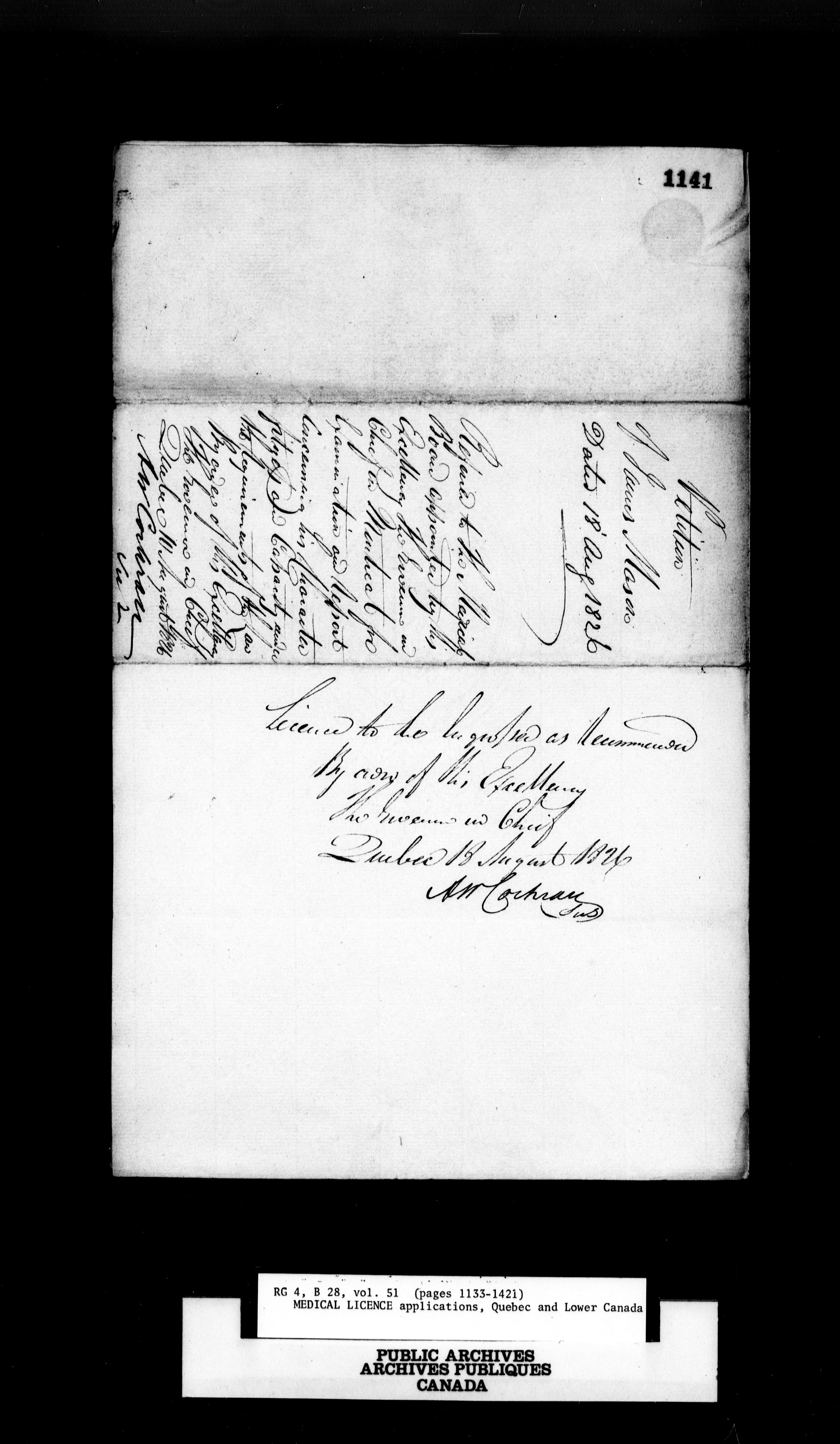 Quebec, Lower Canada, Canada East : Applications for Medical licenses - 1733