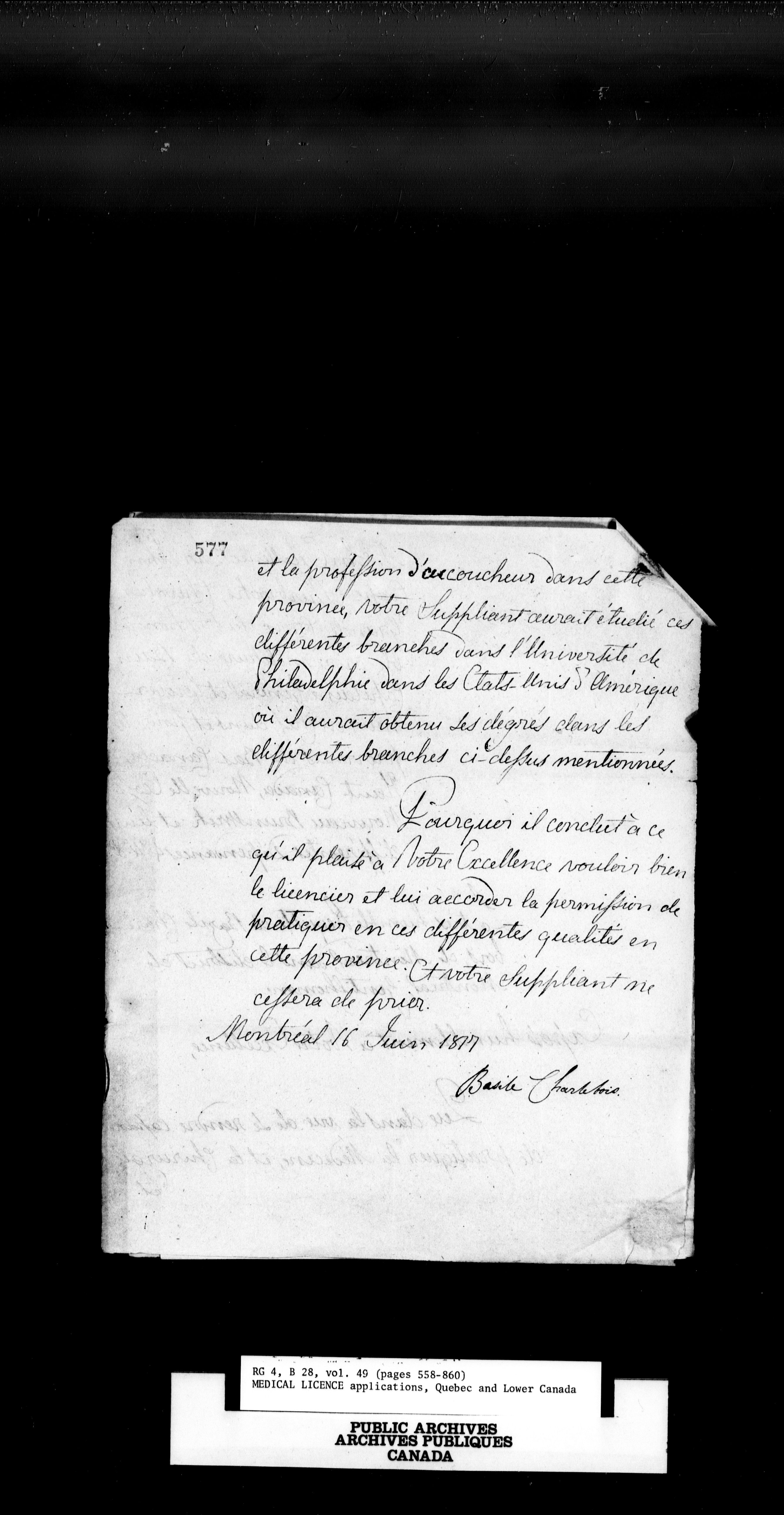 Quebec, Lower Canada, Canada East : Applications for Medical licenses - 1733