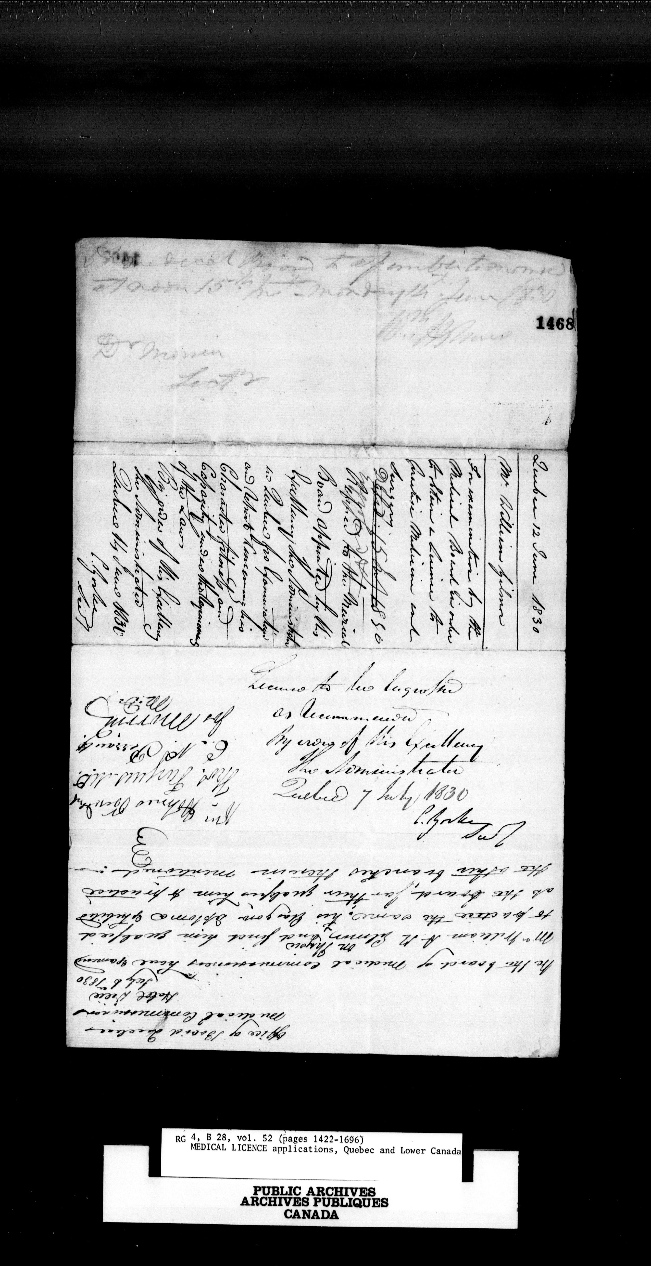 Quebec, Lower Canada, Canada East : Applications for Medical licenses - 1734