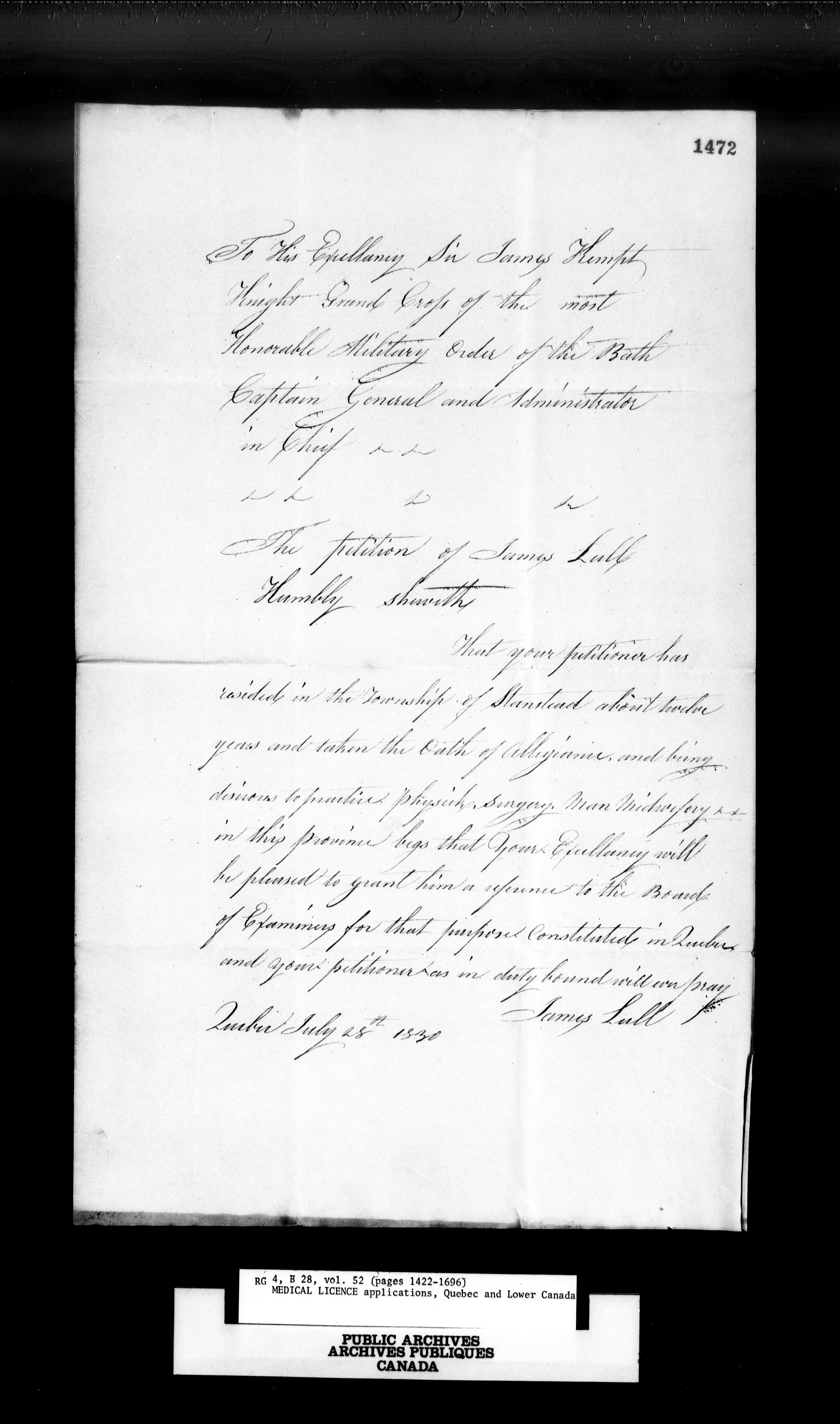Quebec, Lower Canada, Canada East : Applications for Medical licenses - 1734