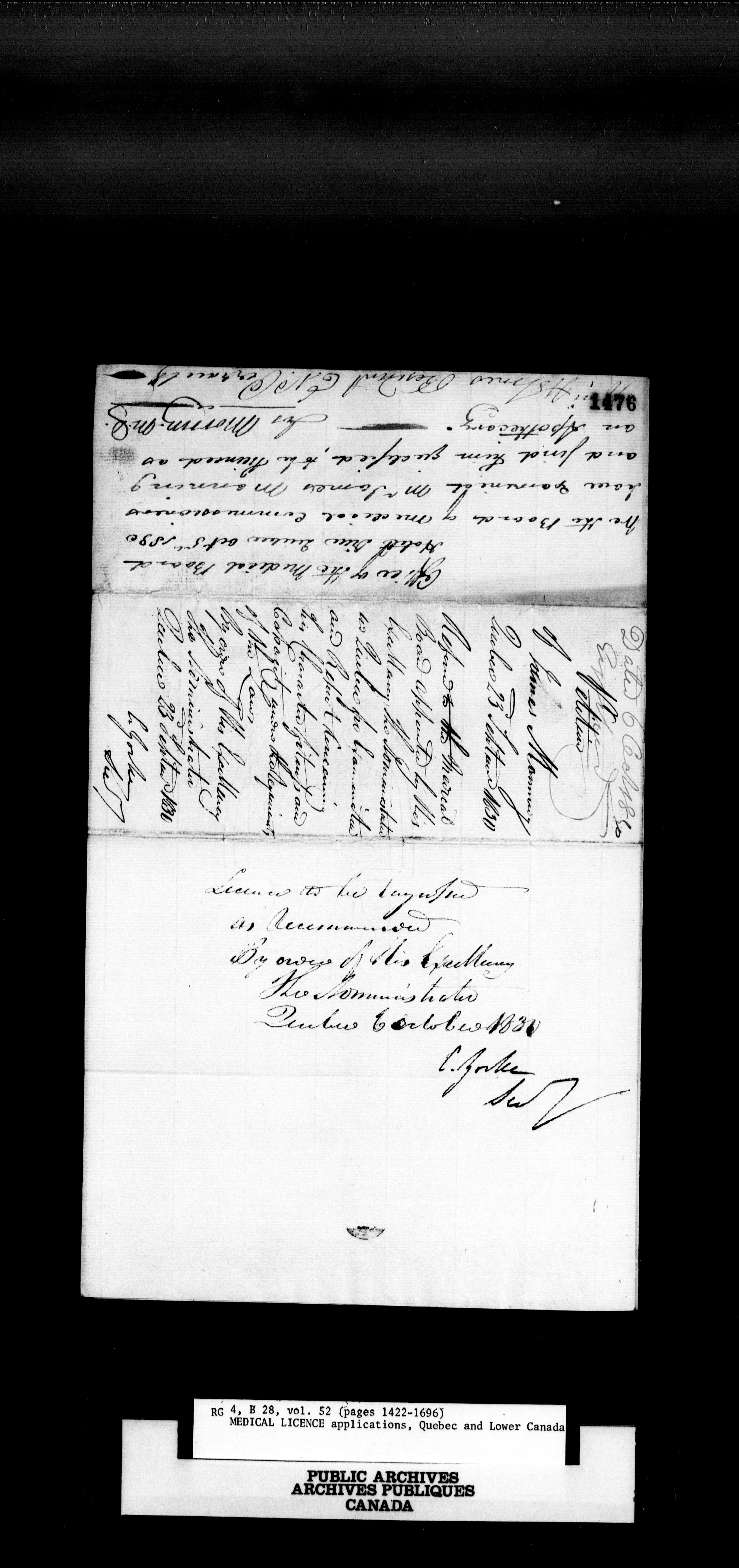 Civil Secretary and Provincial Secretary, applications for licences, bonds and certificates. Quebec, Lower Canada and Canada East : H-1734