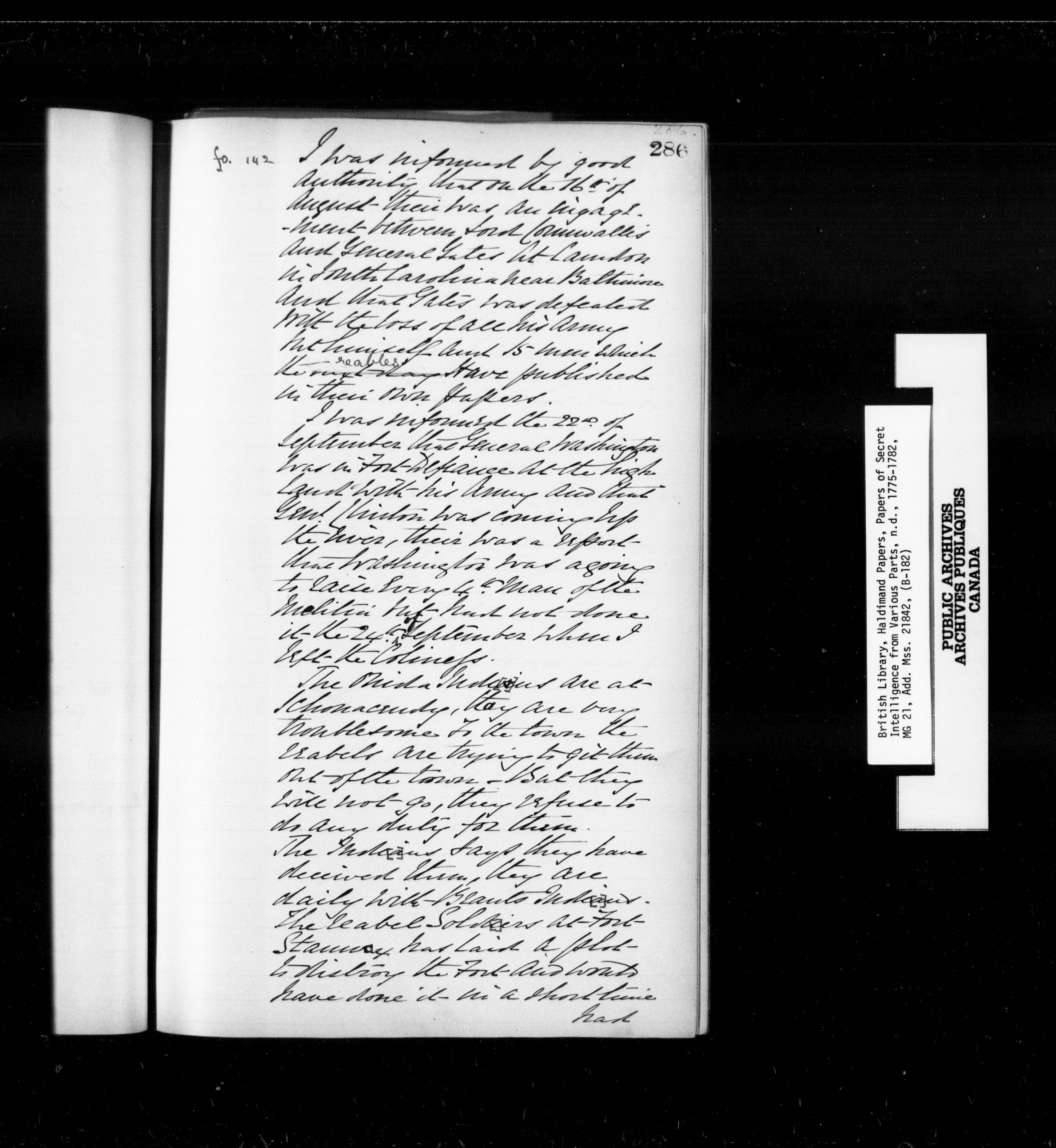 British Library (Formerly British Museum) Haldimand Papers - 1737