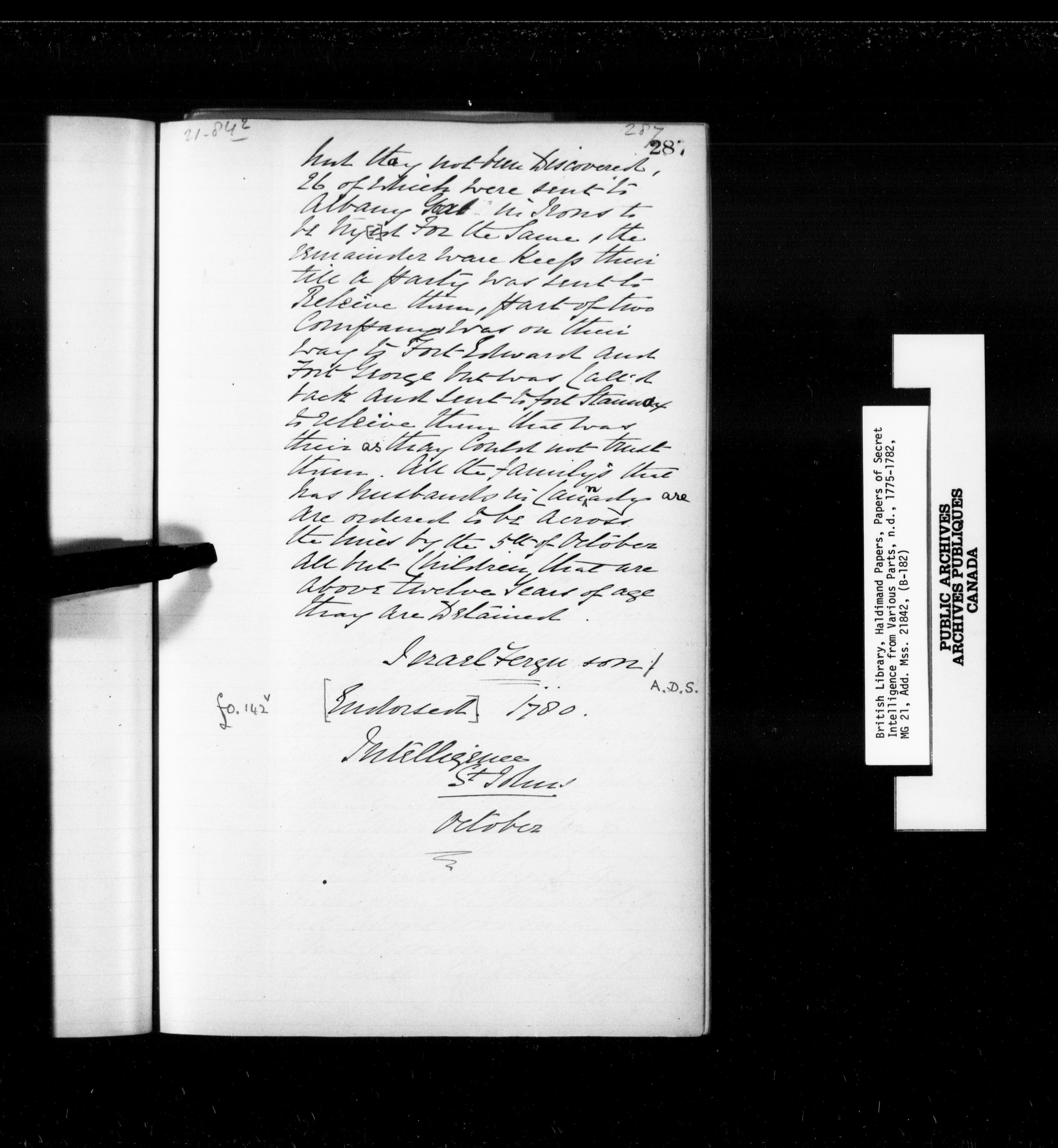 British Library (Formerly British Museum) Haldimand Papers - 1737