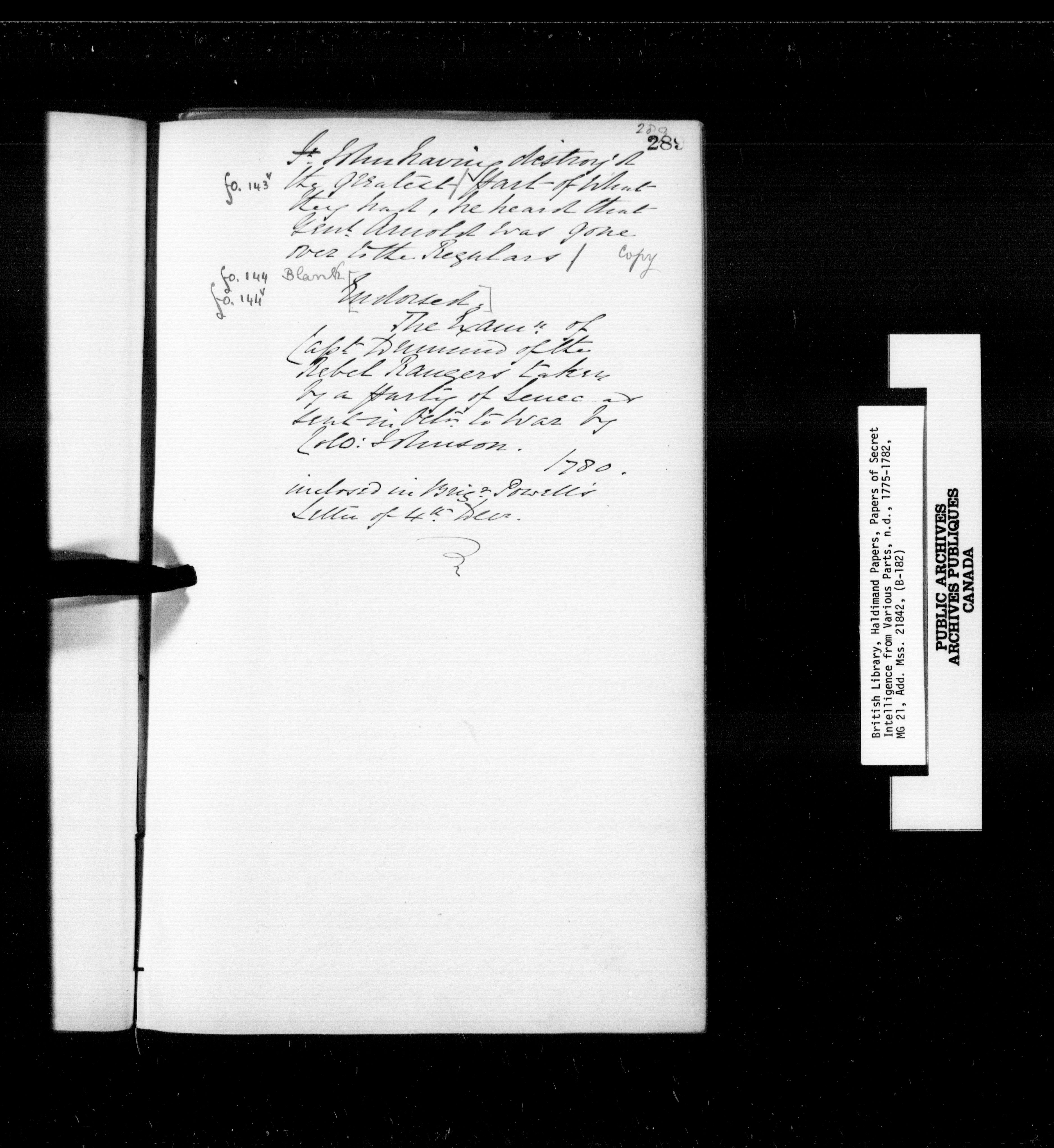 British Library (Formerly British Museum) Haldimand Papers - 1737