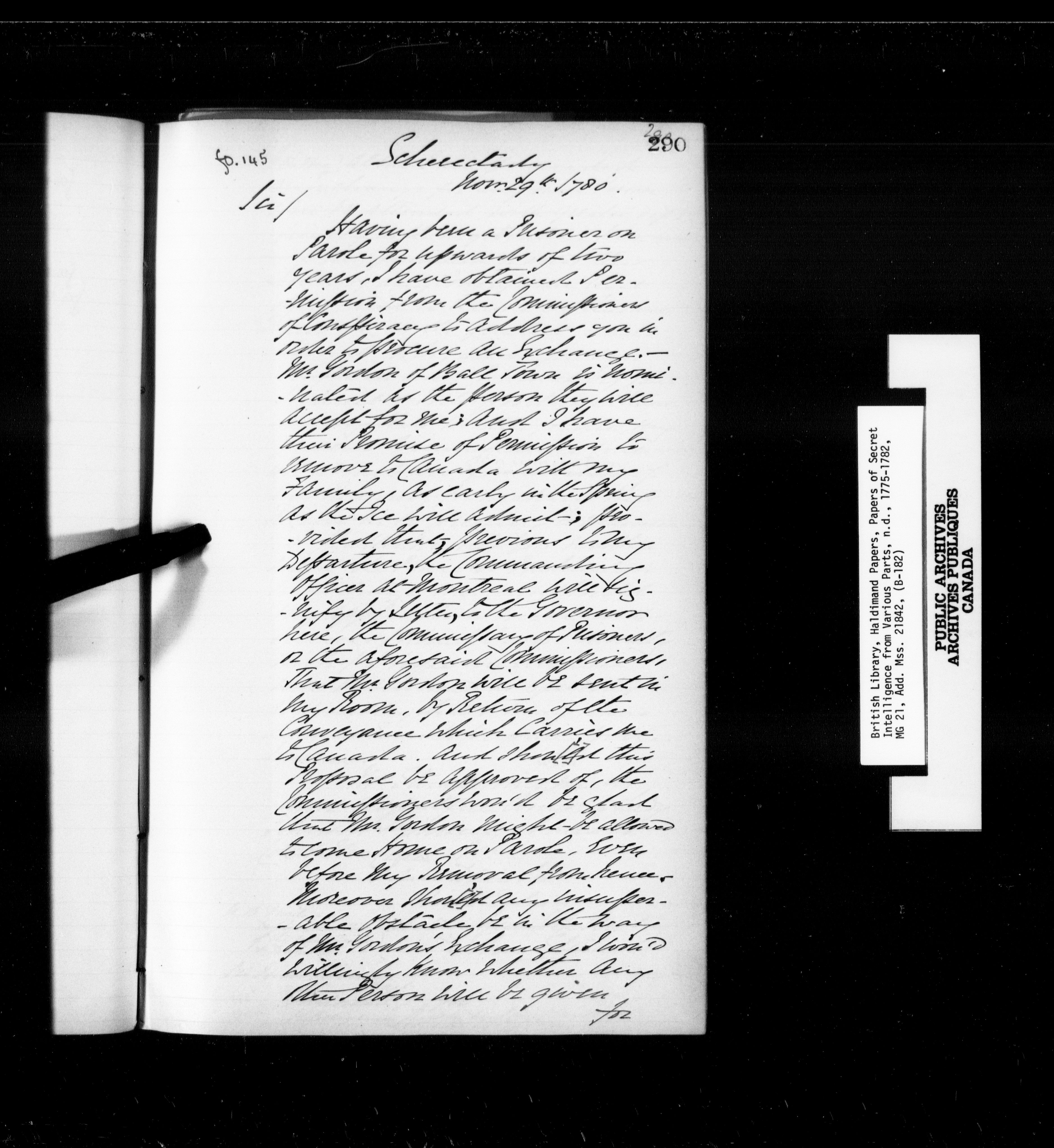 British Library (Formerly British Museum) Haldimand Papers - 1737