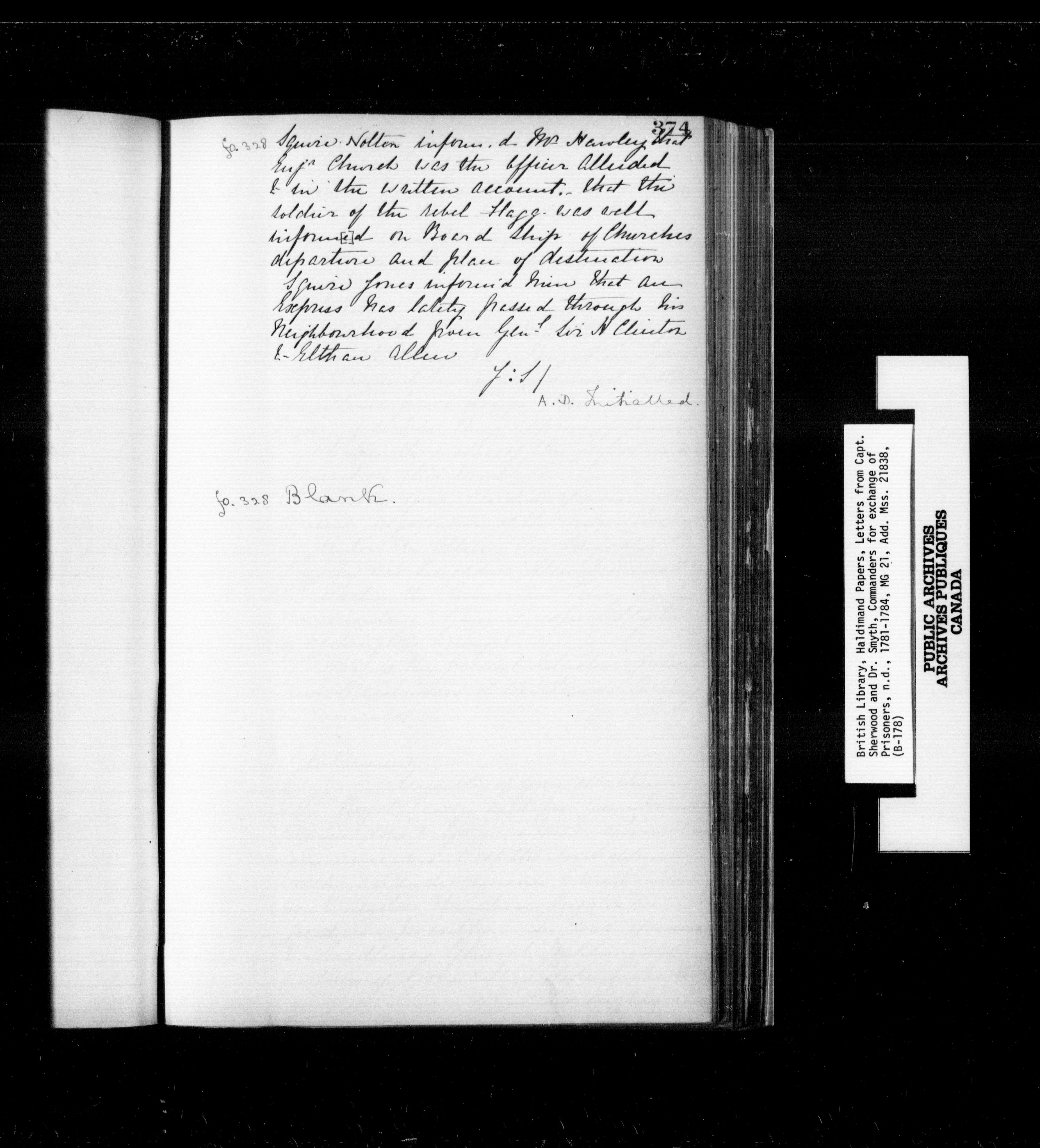 British Library (Formerly British Museum) Haldimand Papers - 1737