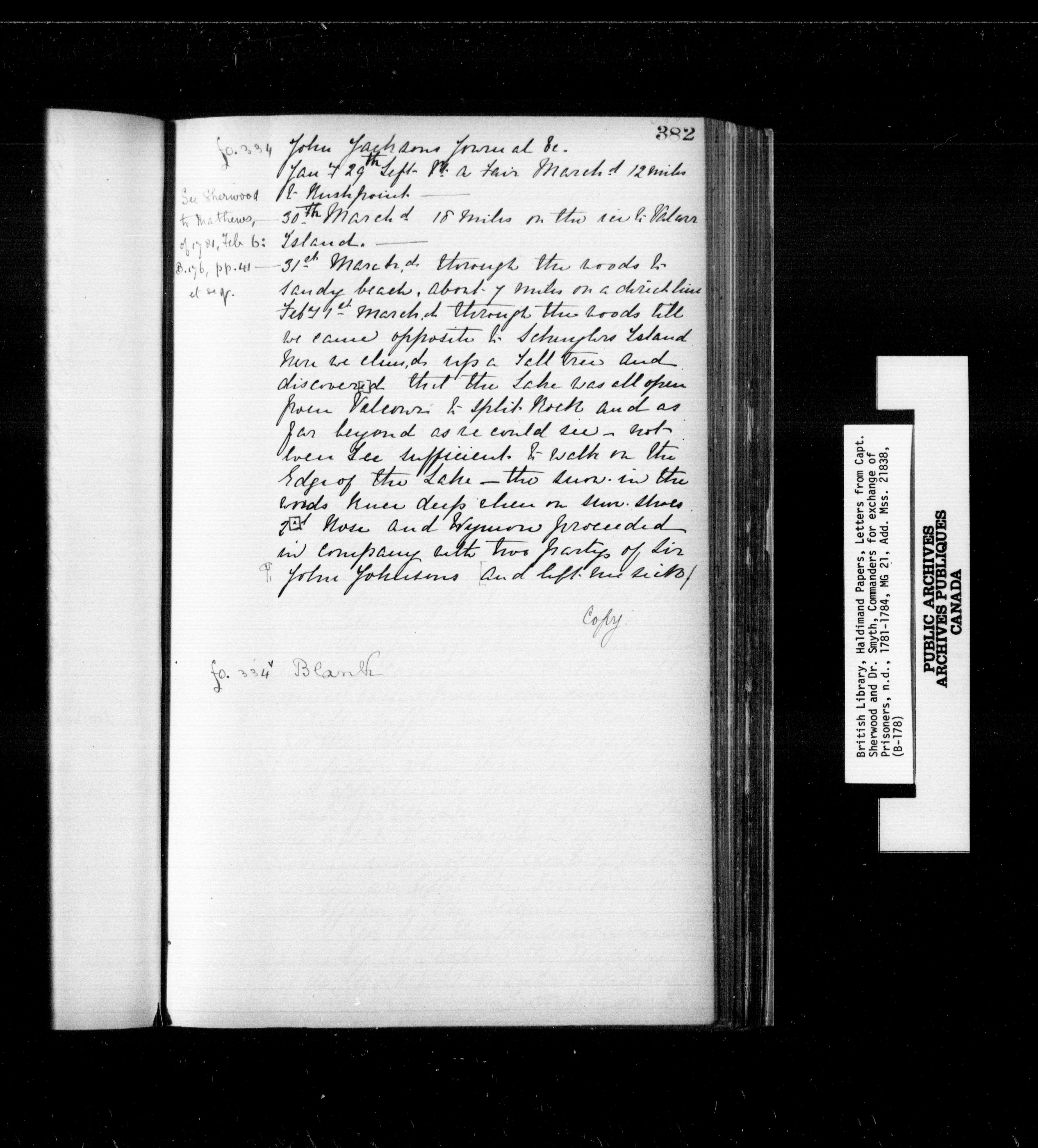 British Library (Formerly British Museum) Haldimand Papers - 1737