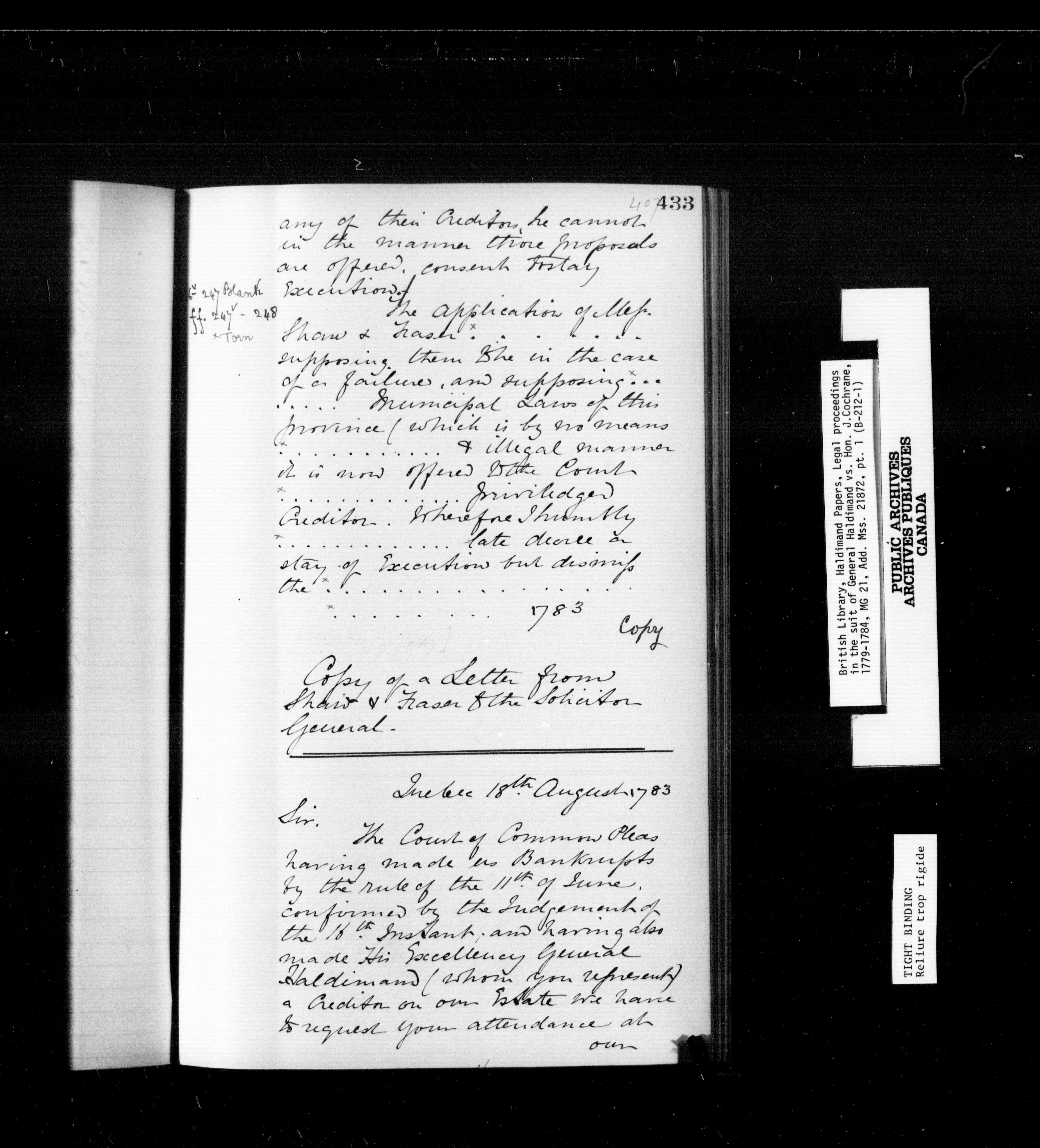 British Library (Formerly British Museum) Haldimand Papers - 1742