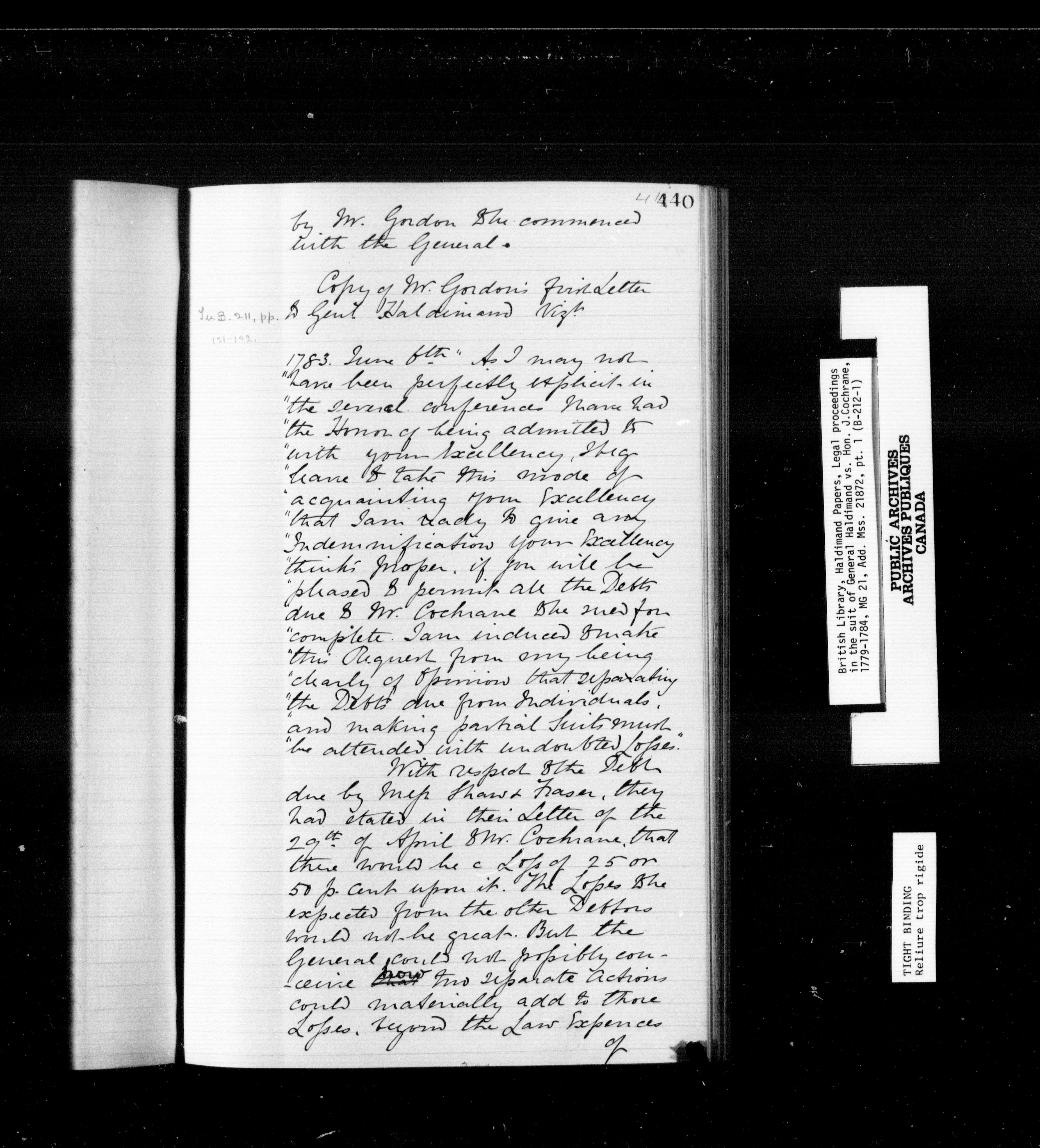 British Library (Formerly British Museum) Haldimand Papers - 1742
