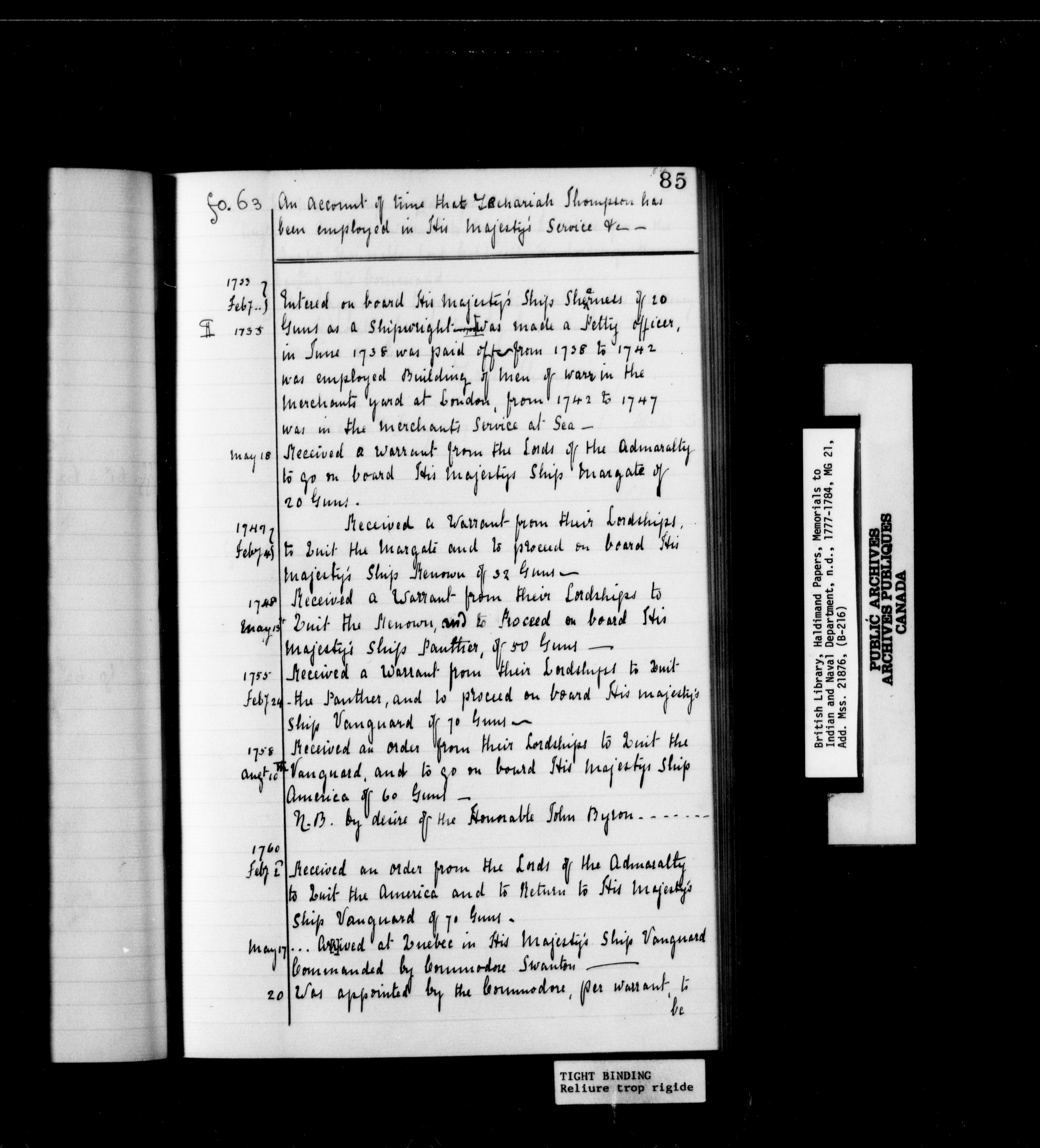 British Library (Formerly British Museum) Haldimand Papers - 1743