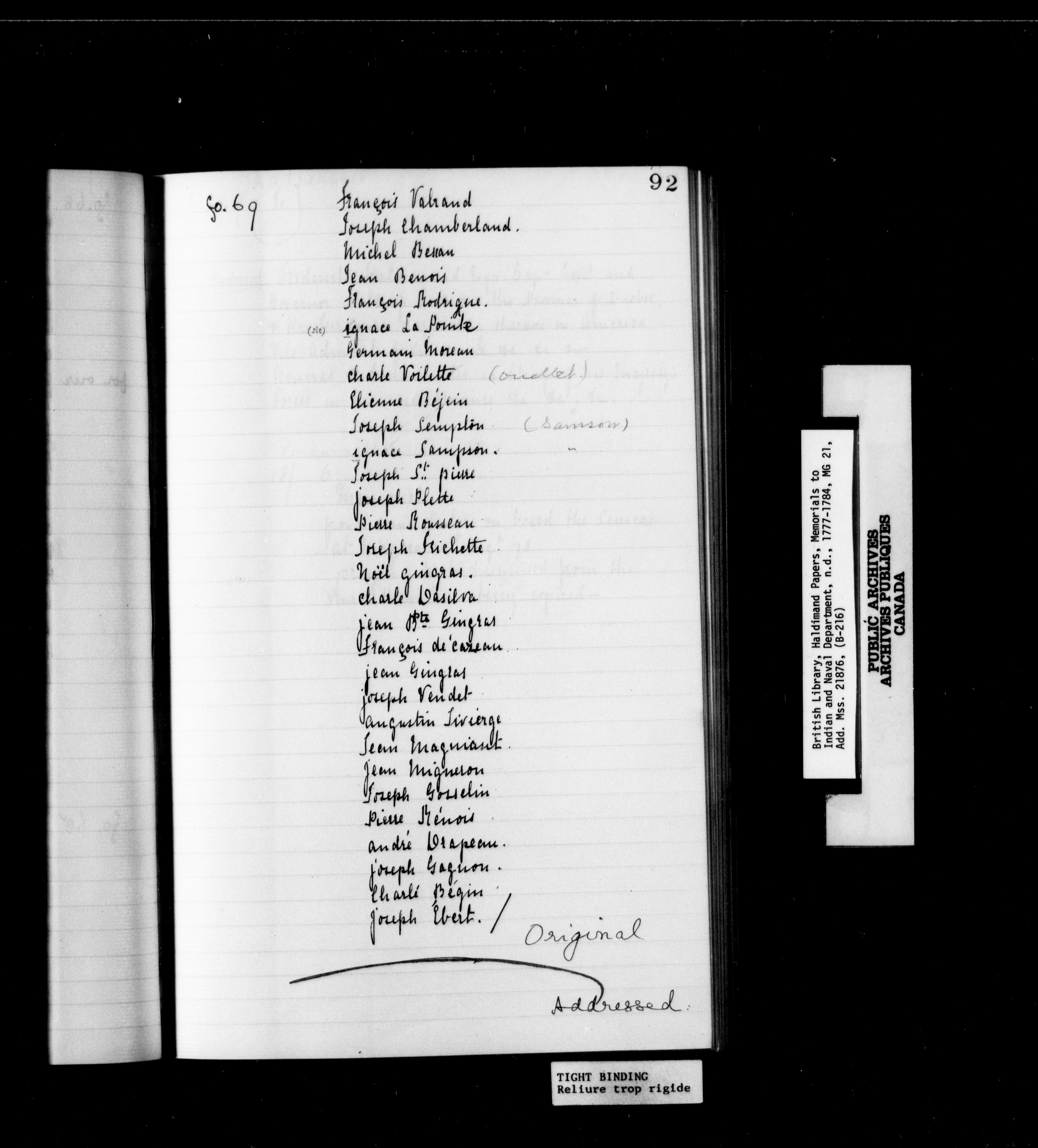 British Library (Formerly British Museum) Haldimand Papers - 1743