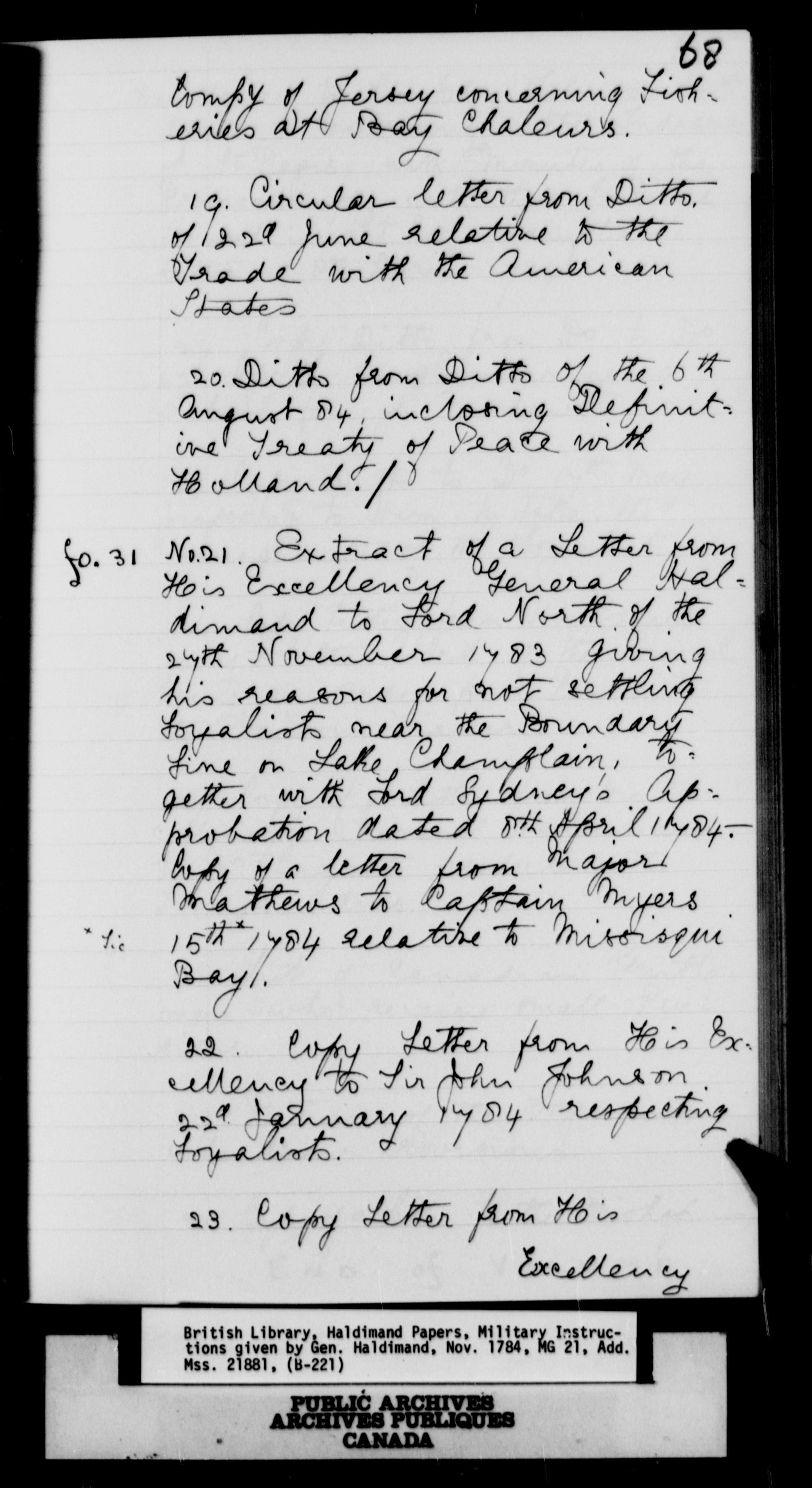 Haldimand papers from the British Library - 1744