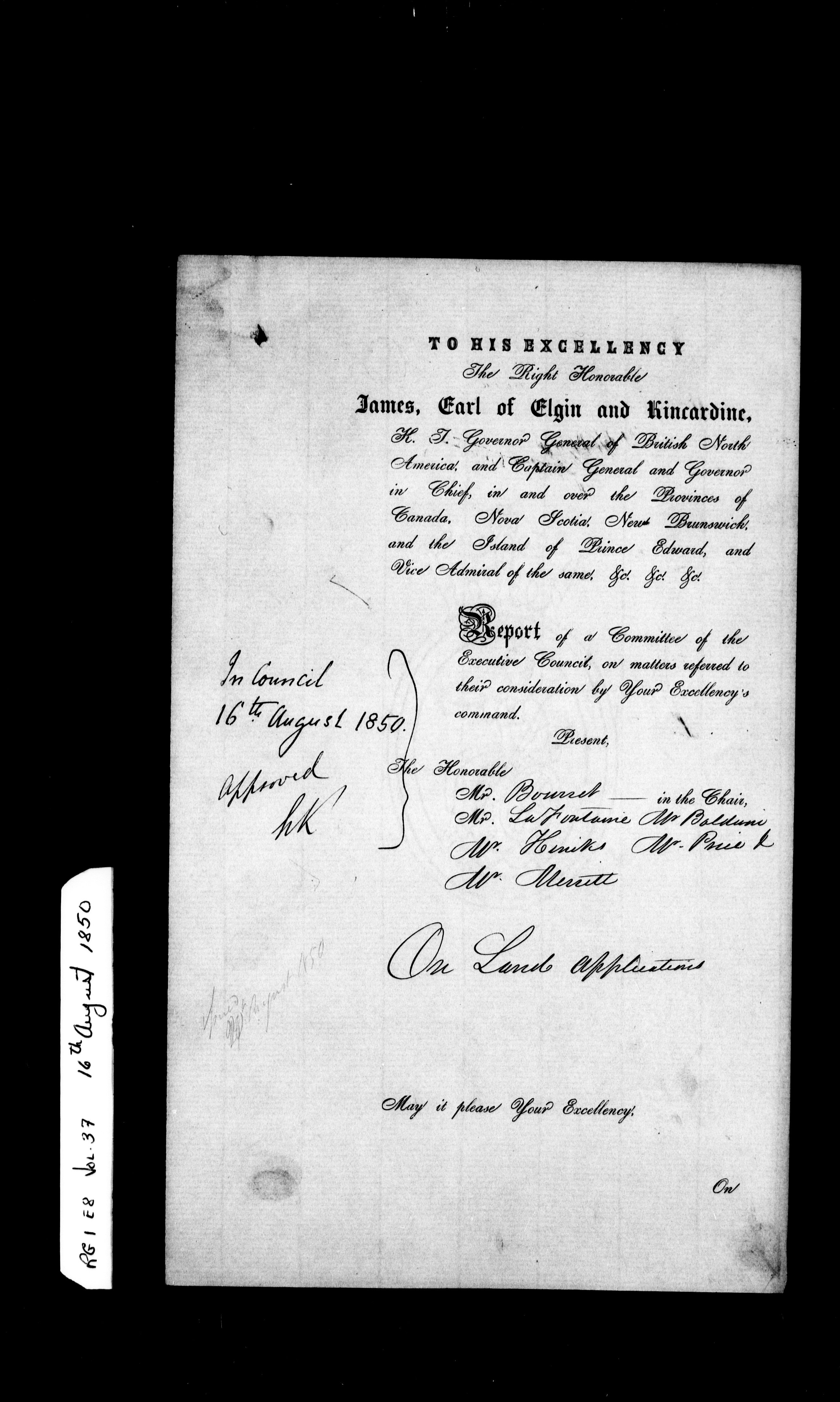 Orders in Council of the Executive Council of the Province of Canada : H-1784