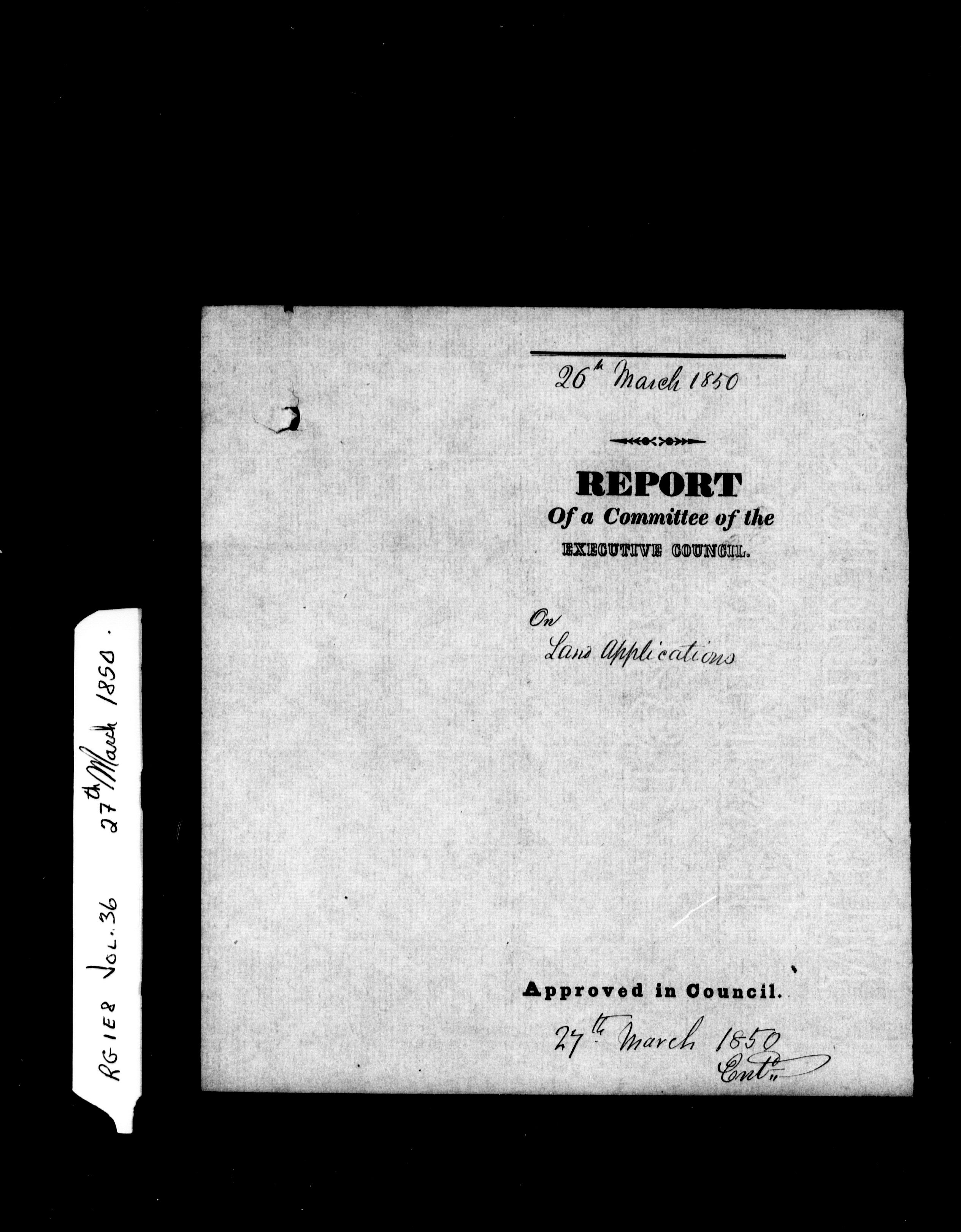 Orders in Council of the Executive Council of the Province of Canada - 1784