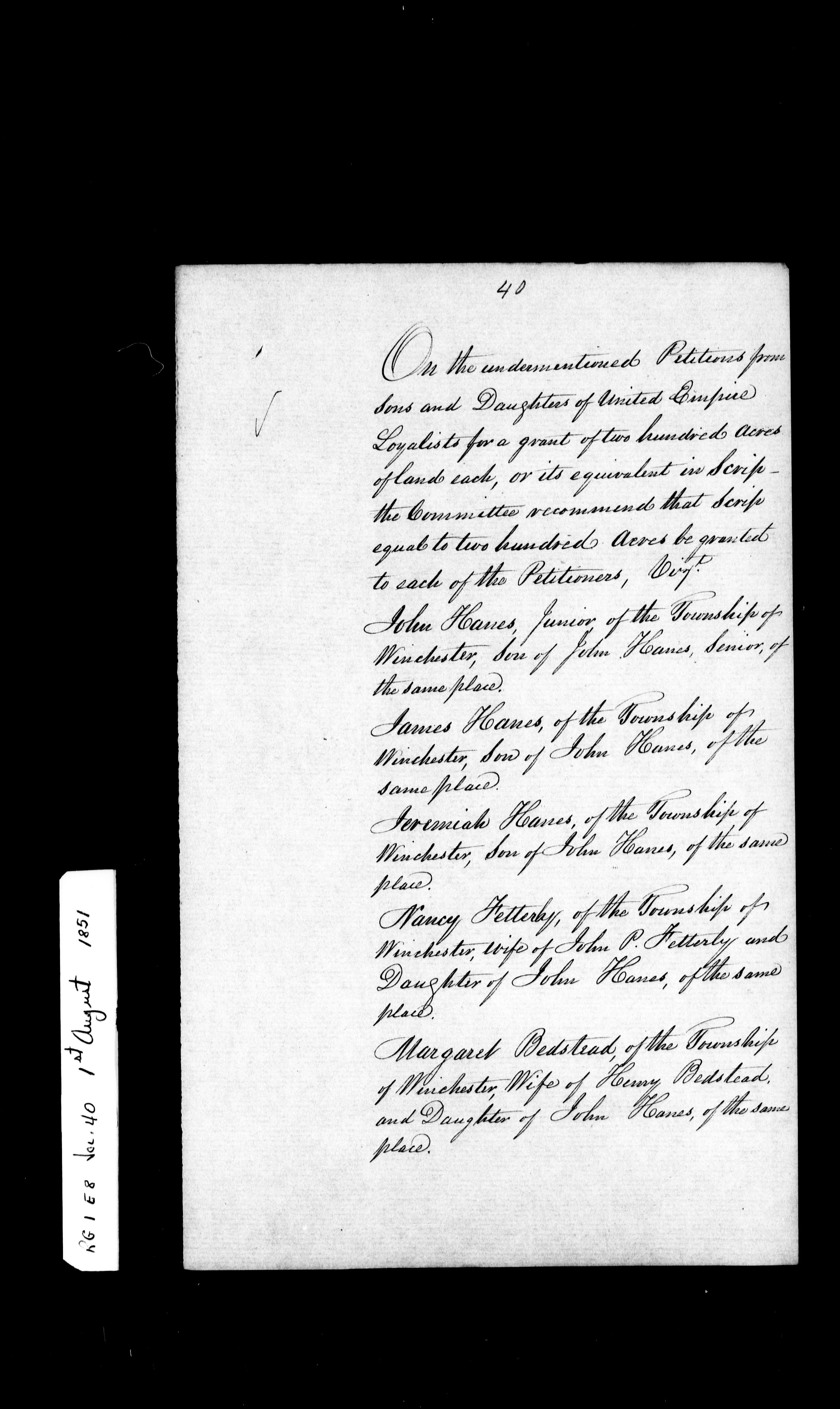 Orders in Council of the Executive Council of the Province of Canada - 1786