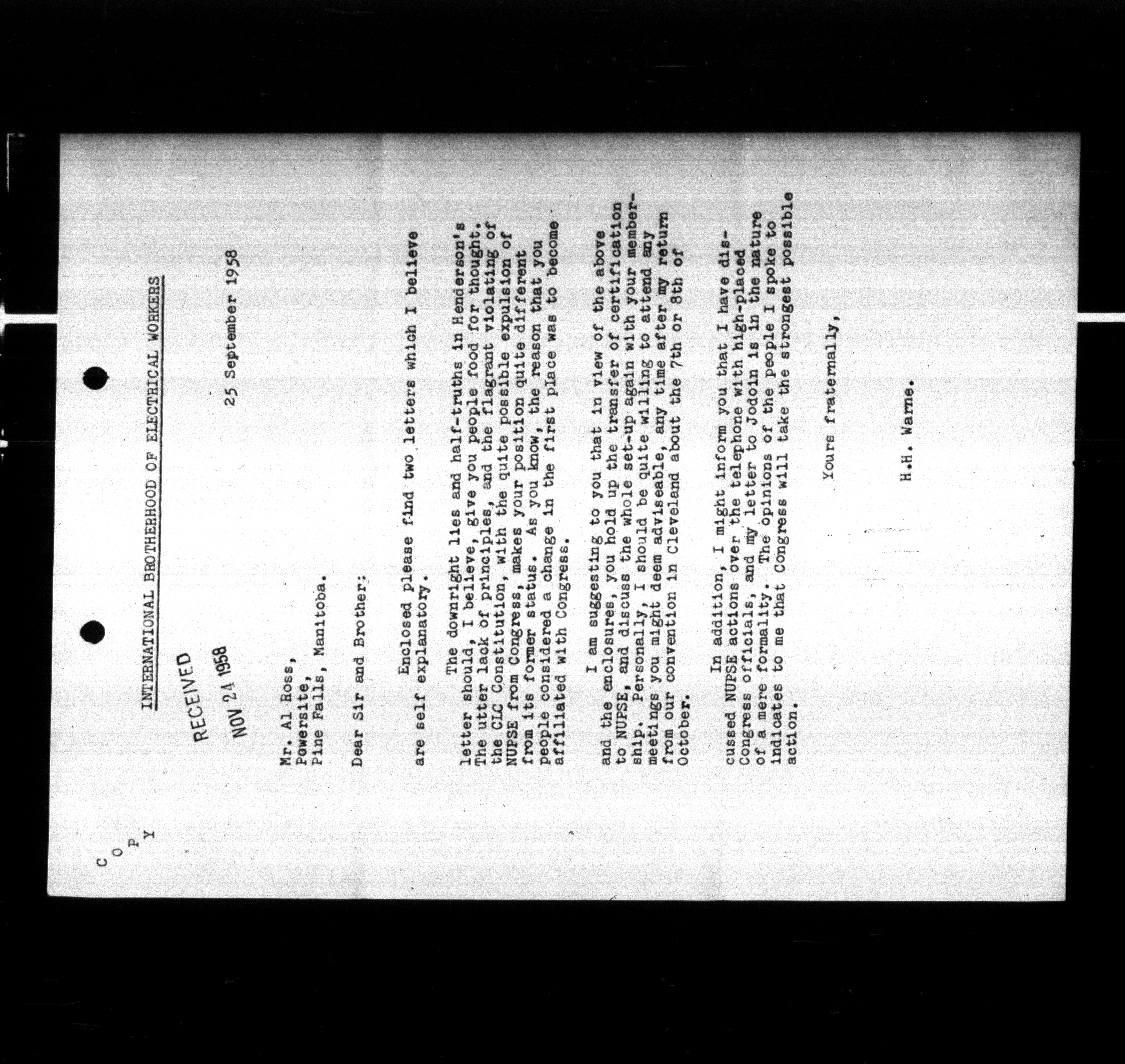Canadian Labour Congress : Organization Department files : H-18