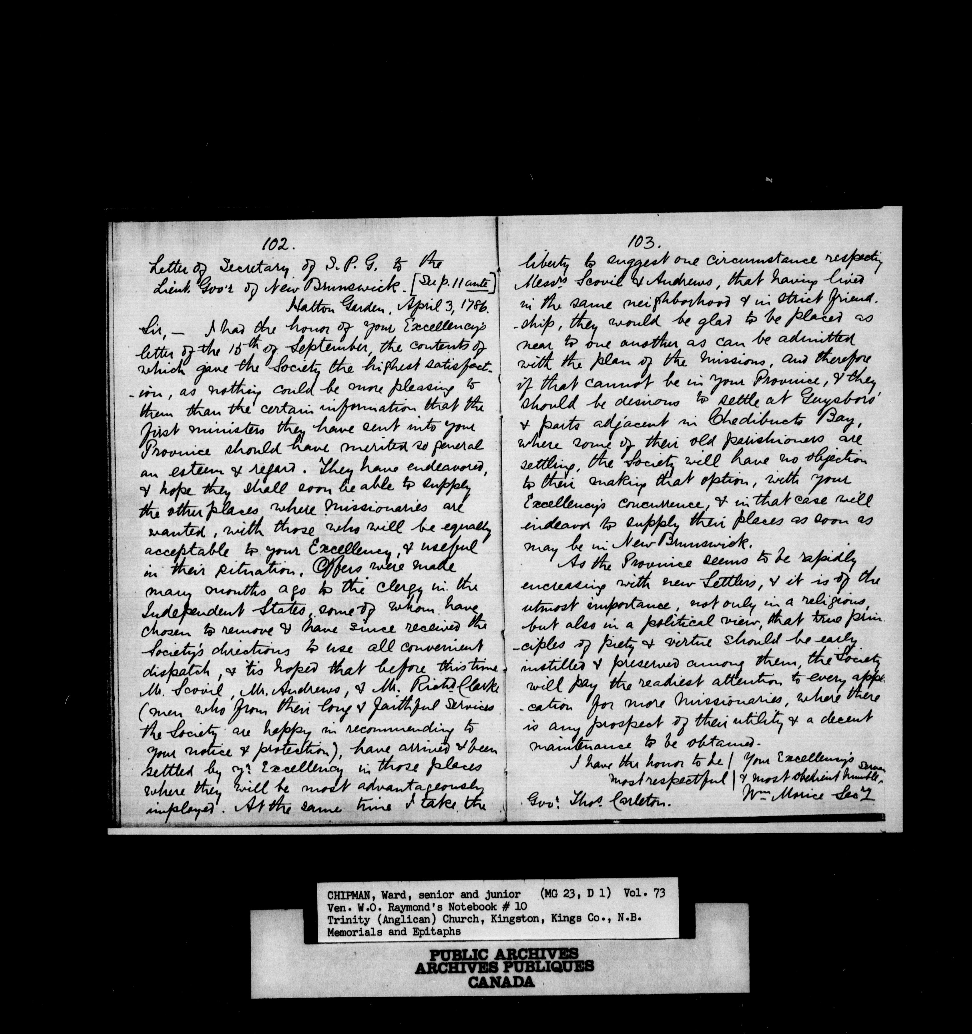 Shediac Cape, N.B. : St. Martin's-in-the-Woods (Anglican Church) Vestry book and registers - 1806