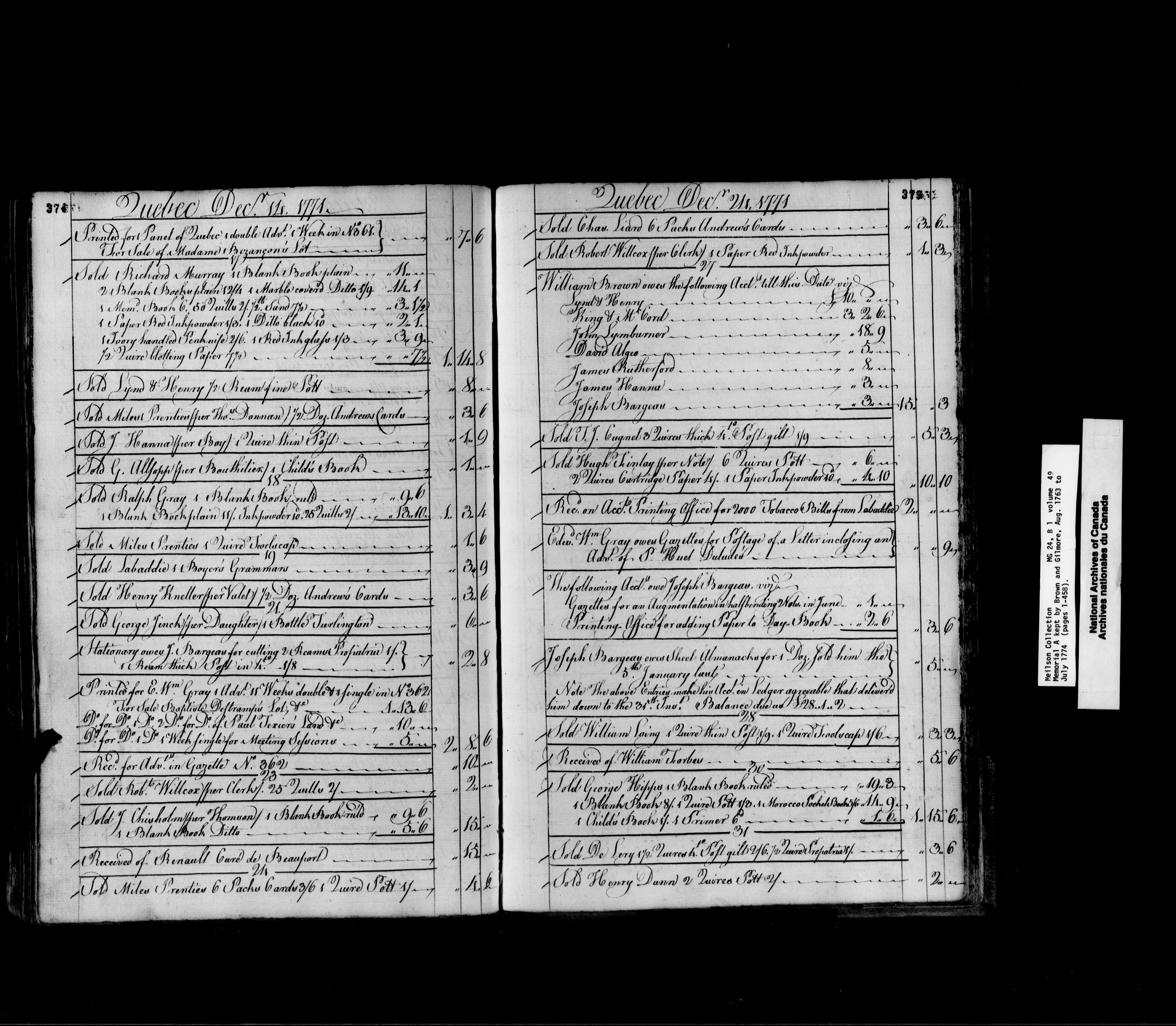 Neilson collection with a memorial kept by Brown & Gilmore, August 1763 to July 1774 - 1829