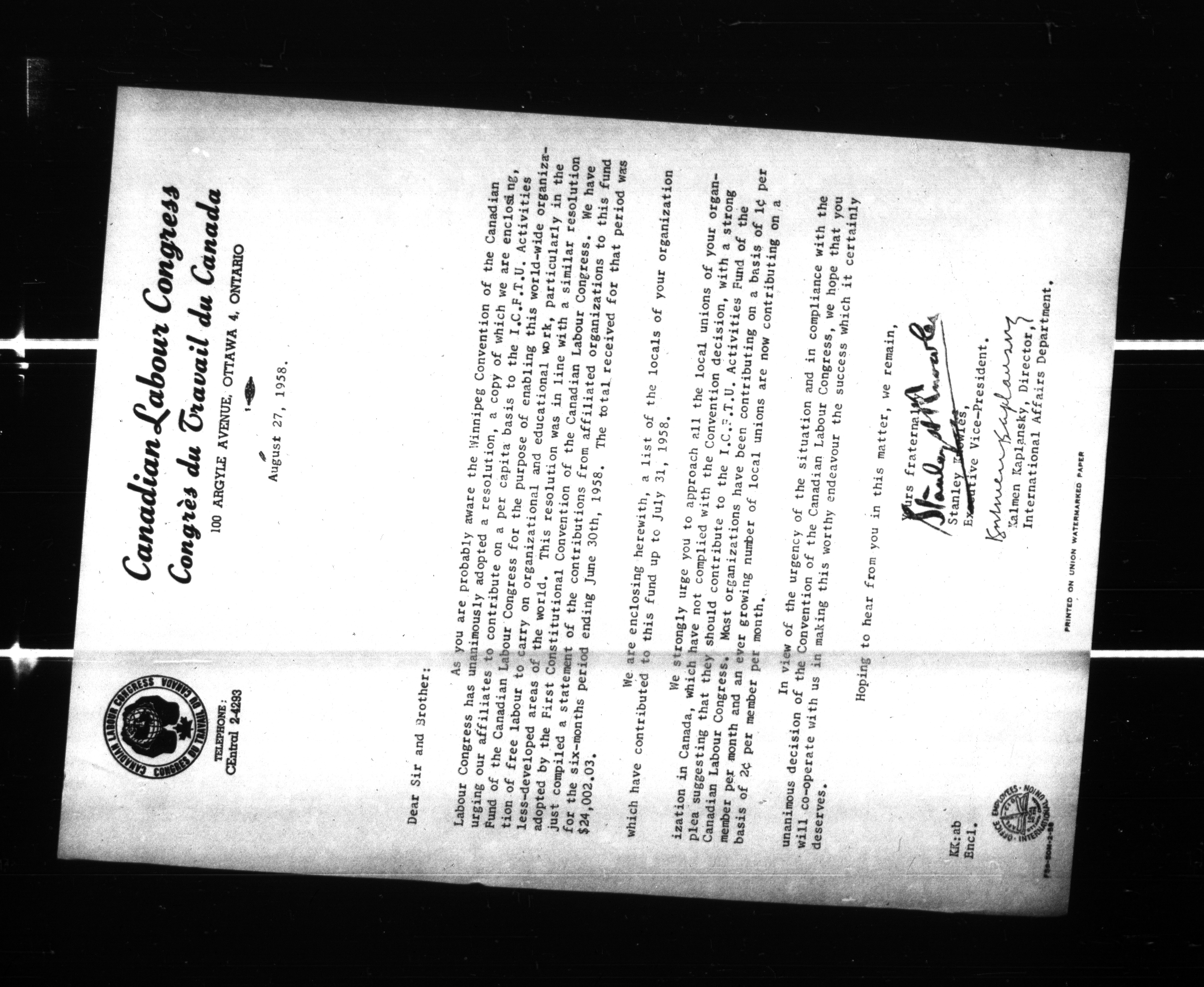 Canadian Labour Congress : International Affairs Department files : H-183