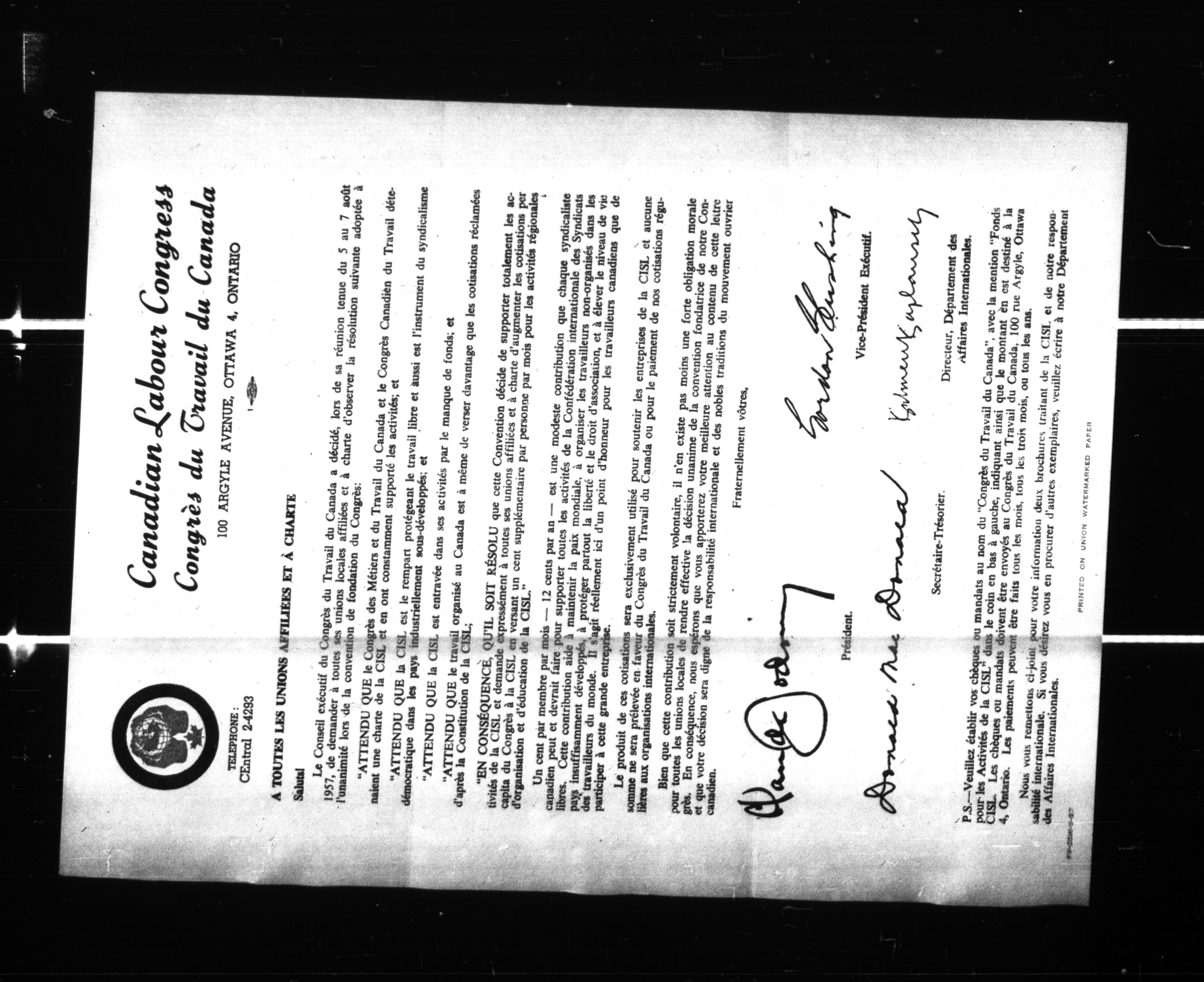 Canadian Labour Congress : International Affairs Department - 183