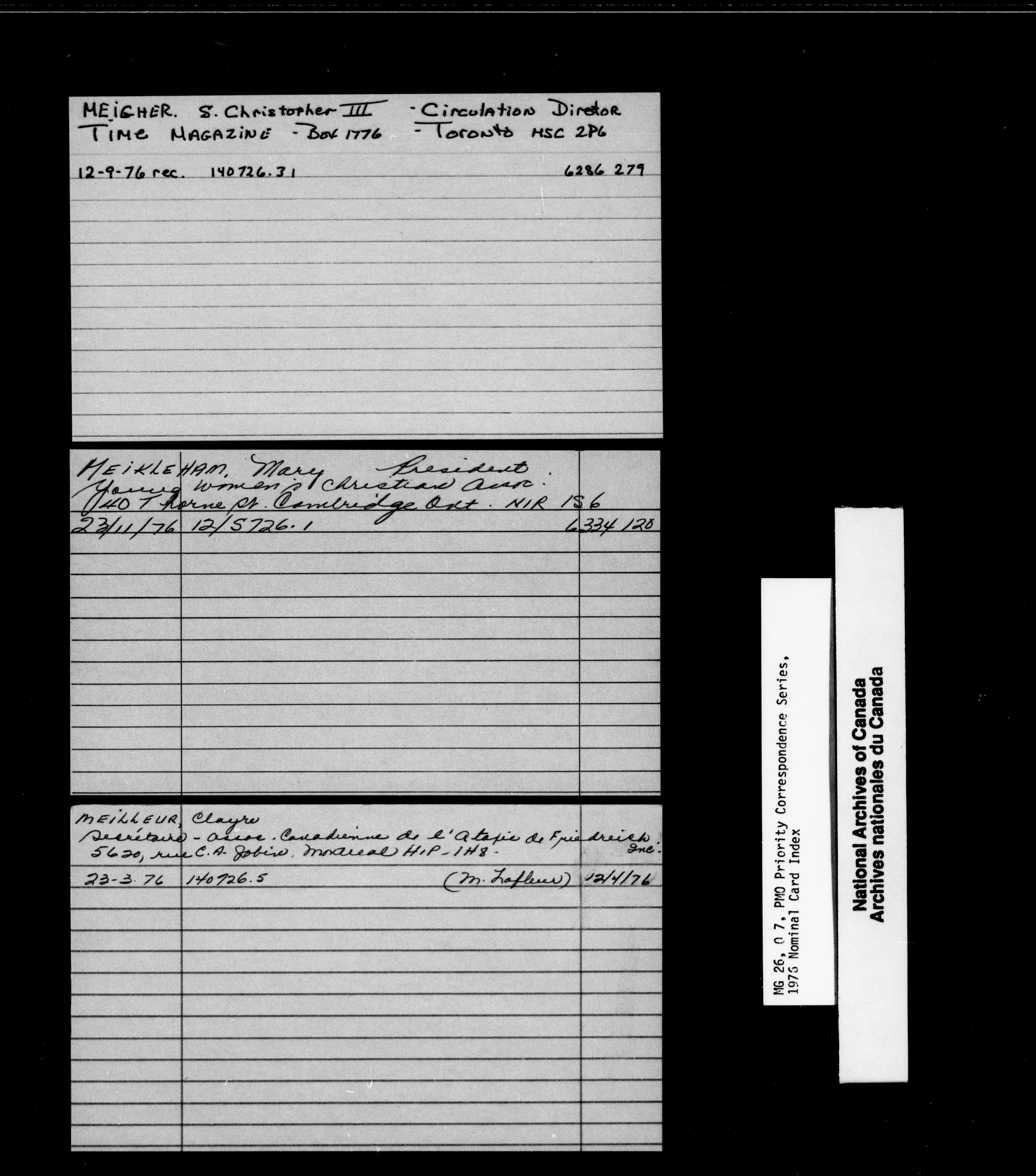 Pierre Elliott Trudeau priority correspondence 1976-1978 : Nominal Card Index - 1835