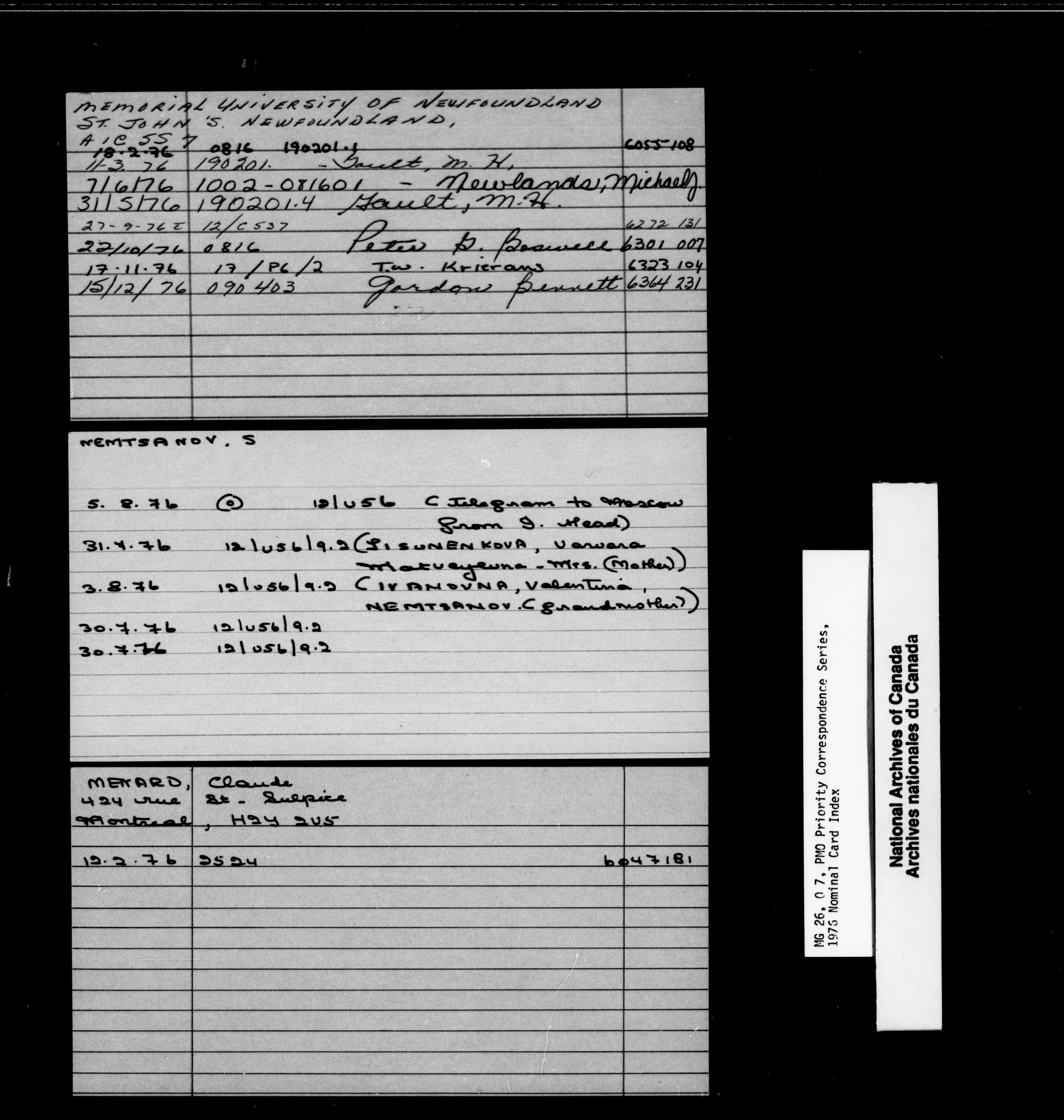 Pierre Elliott Trudeau priority correspondence 1976-1978 : Nominal Card Index - 1835