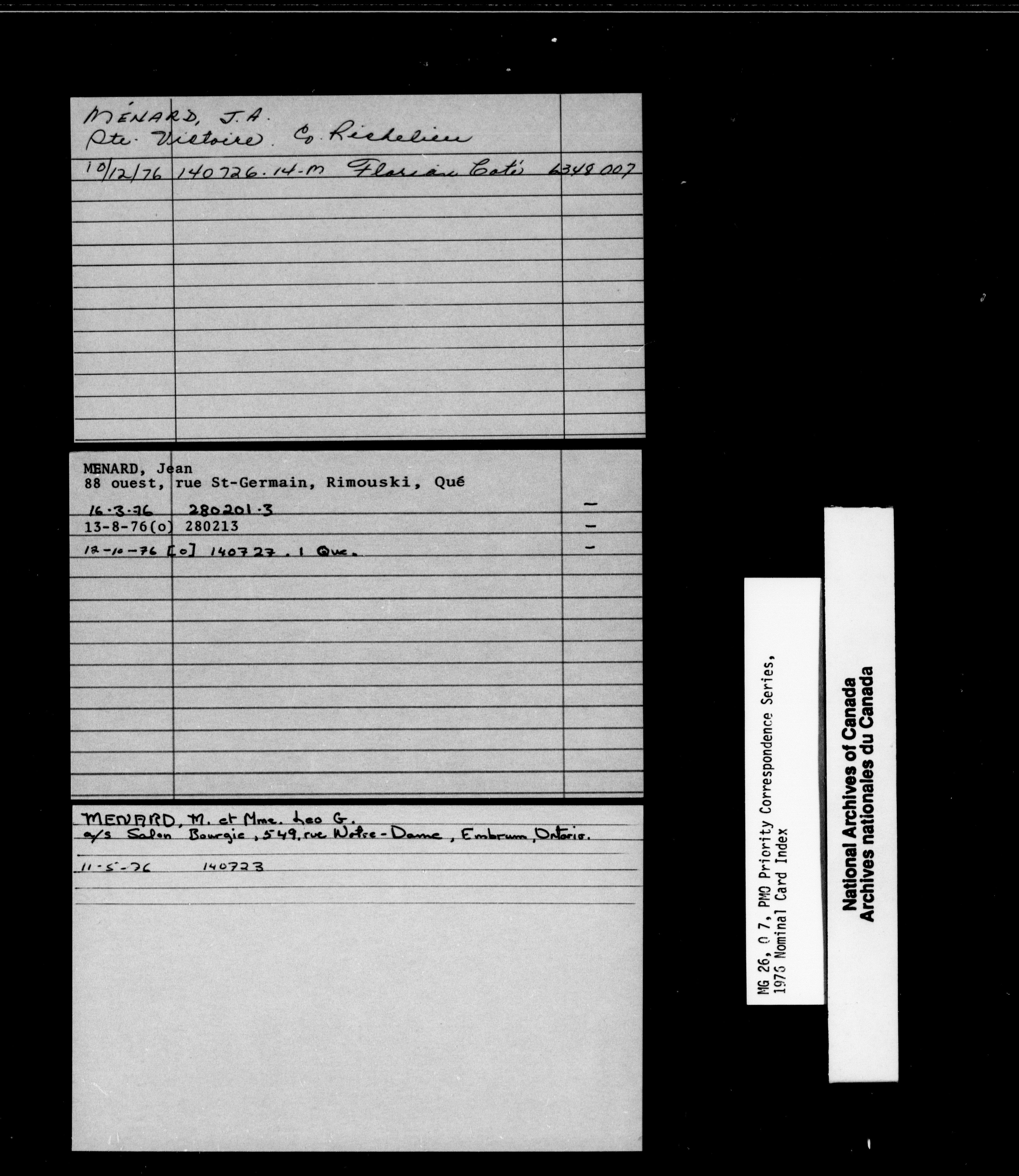 Pierre Elliott Trudeau priority correspondence 1976-1978 : Nominal Card Index - 1835