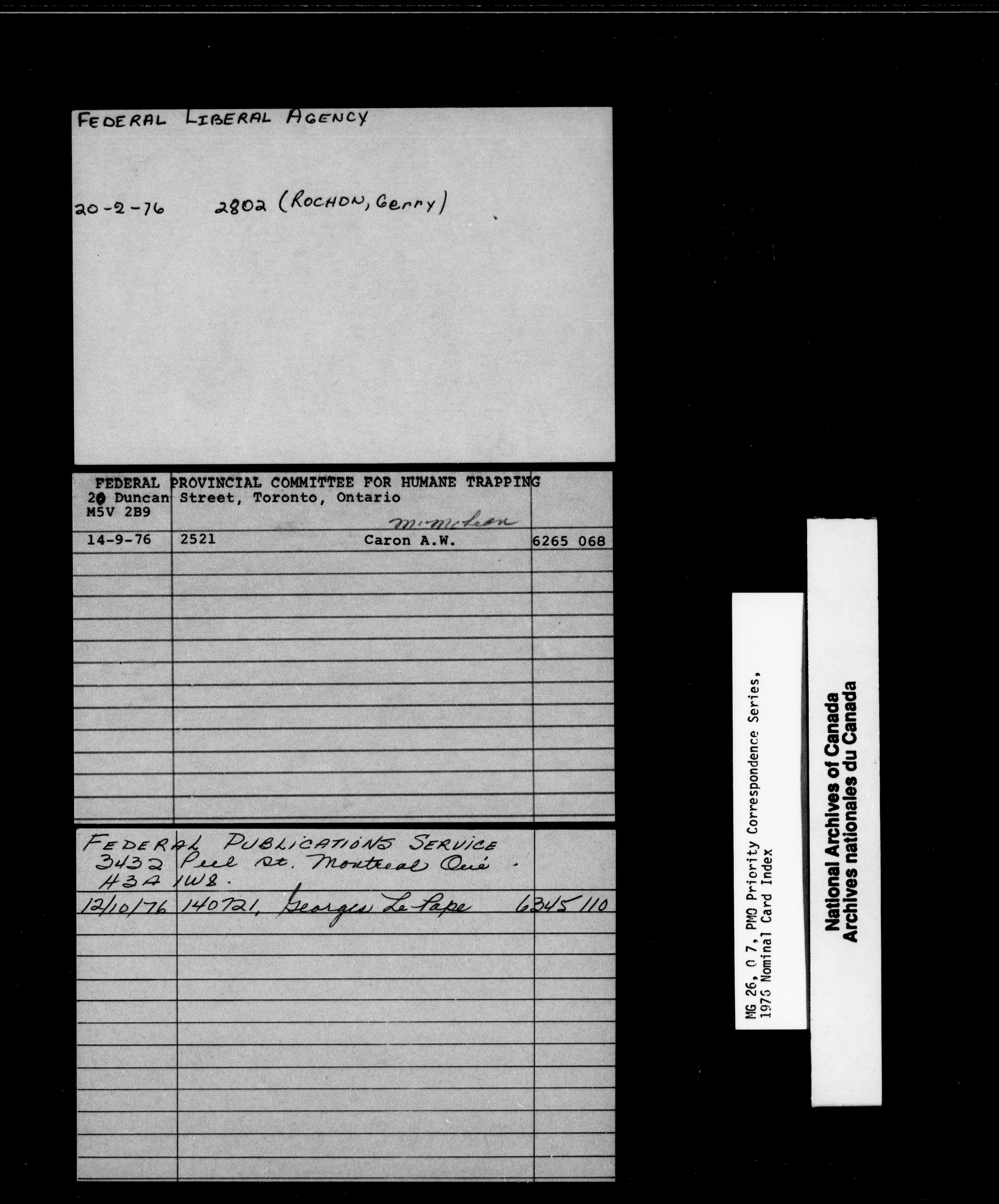 Pierre Elliott Trudeau priority correspondence 1976-1978 : Nominal Card Index - 1835