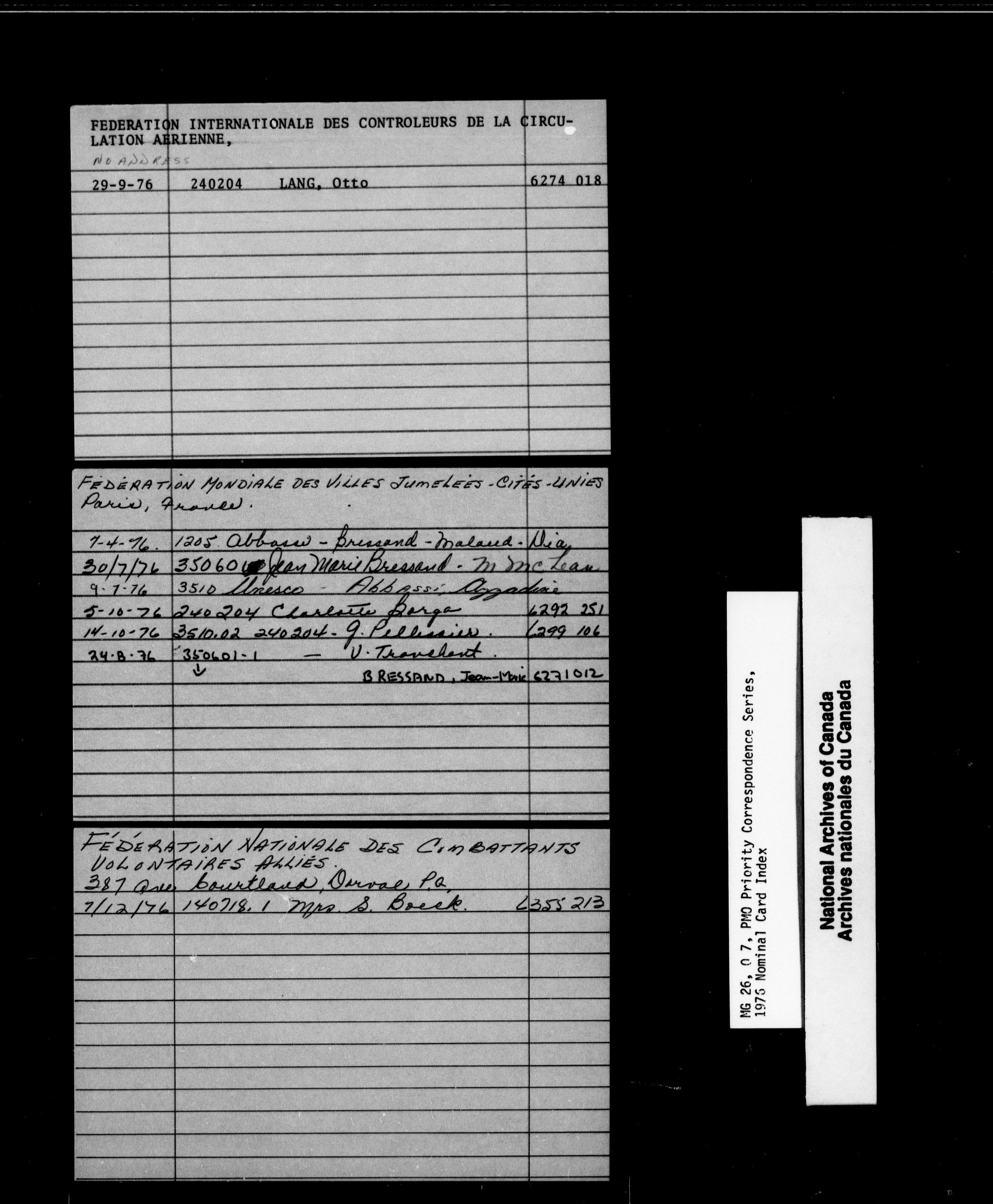 Pierre Elliott Trudeau priority correspondence 1976-1978 : Nominal Card Index - 1835