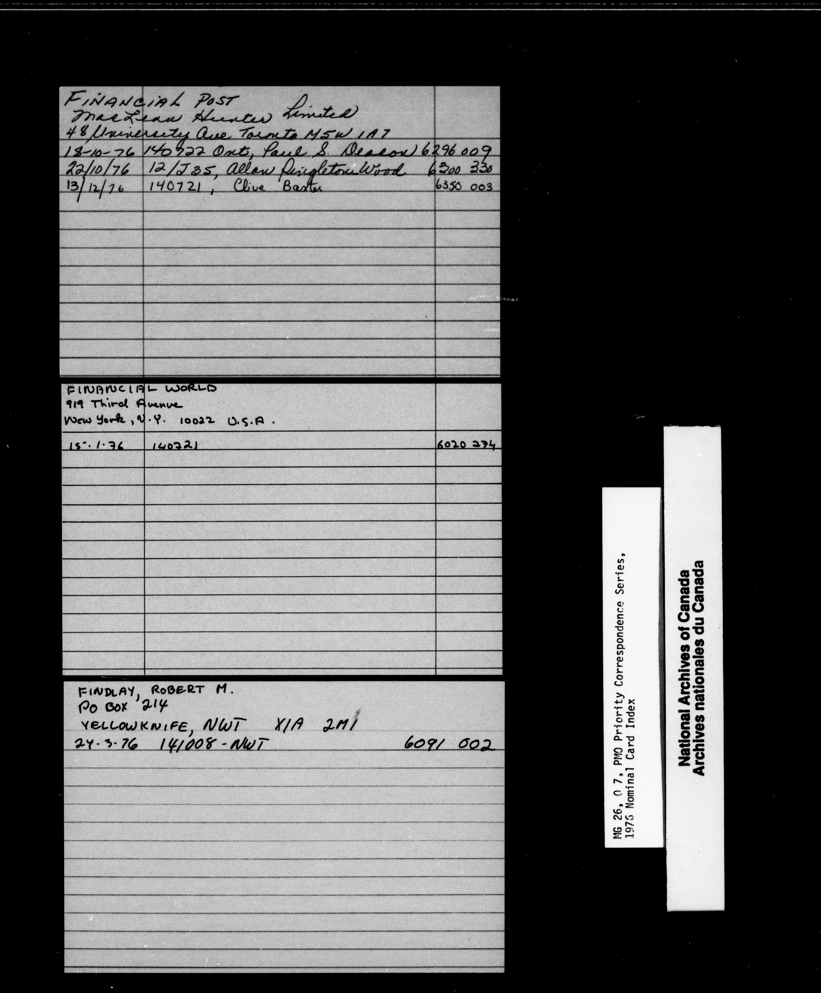 Pierre Elliott Trudeau priority correspondence 1976-1978 : Nominal Card Index - 1835