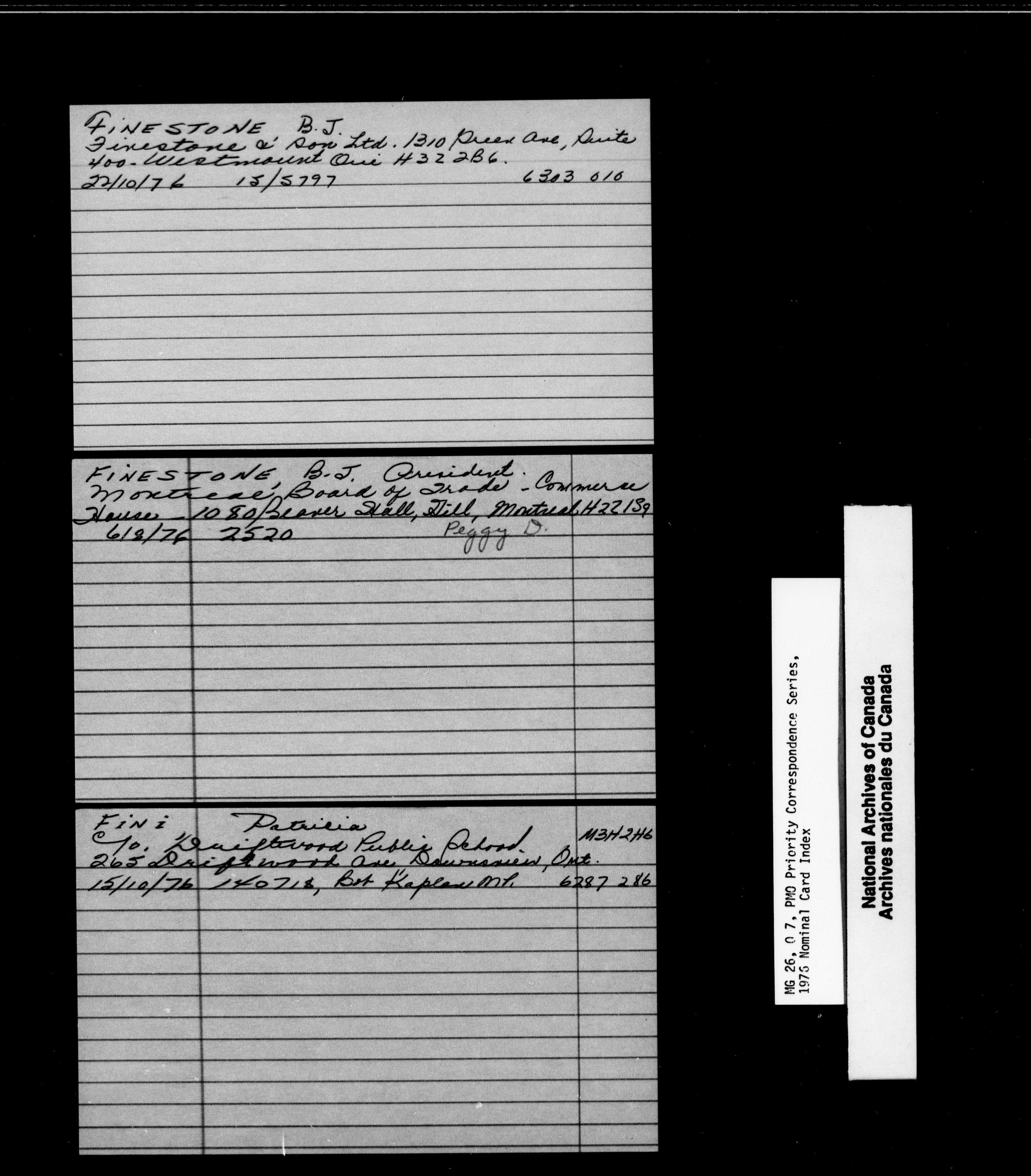 Pierre Elliott Trudeau priority correspondence 1976-1978 : Nominal Card Index - 1835