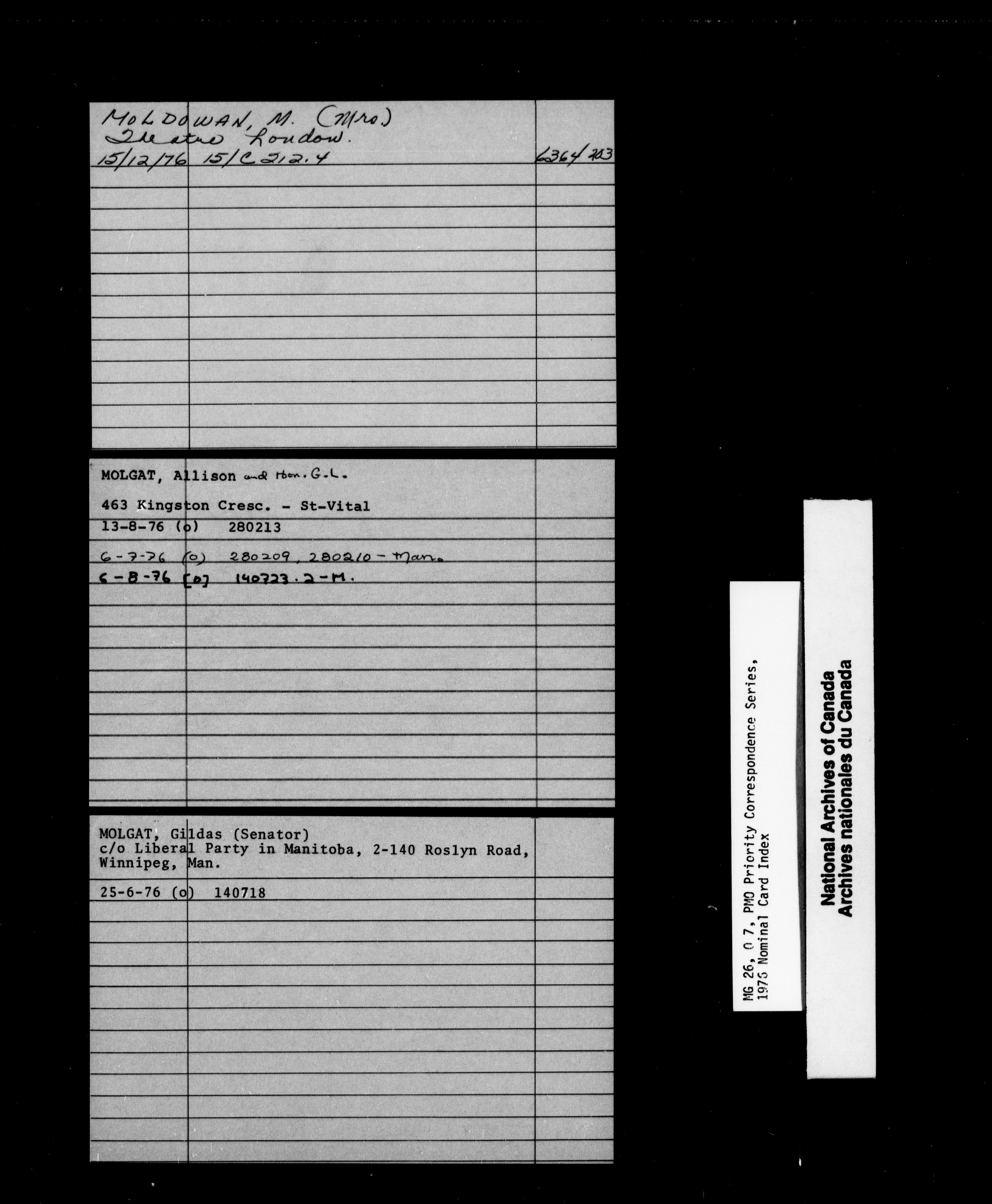 Pierre Elliott Trudeau priority correspondence 1976-1978 : Nominal Card Index - 1836