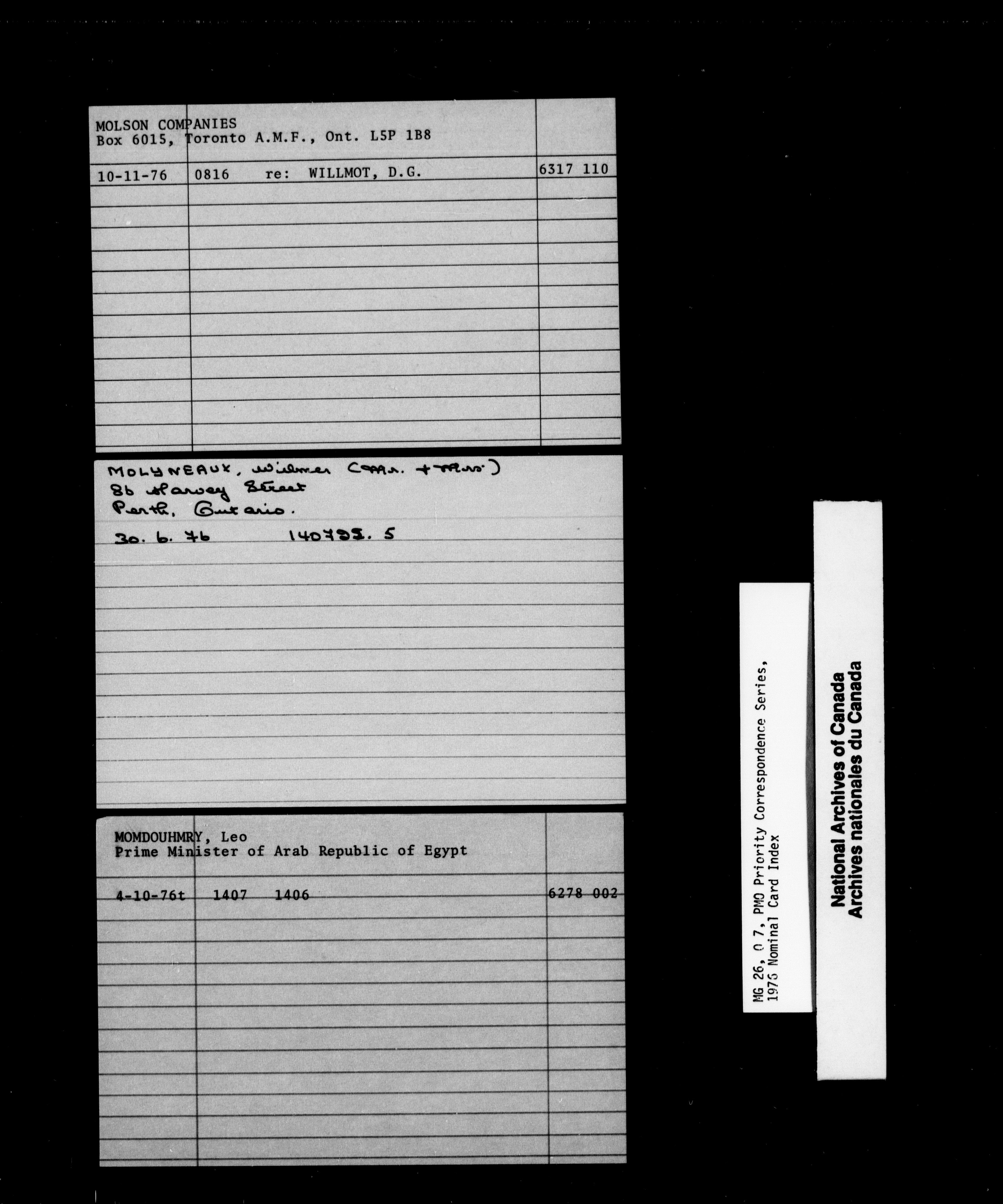 Pierre Elliott Trudeau priority correspondence 1976-1978 : Nominal Card Index - 1836